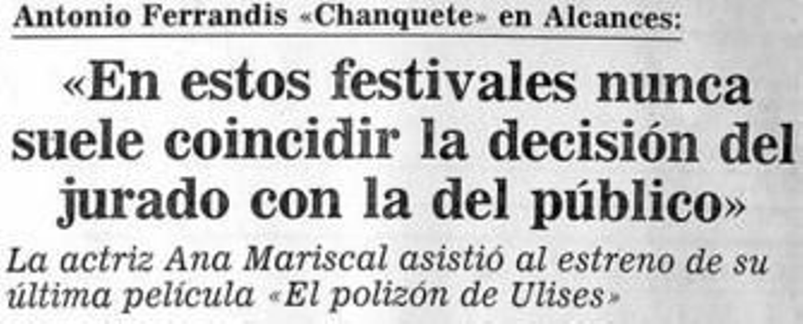 Otra anécdota que pasará a los anales de Alcances y que contó Quiñones en el Diario fue que en 1976 se engañó a la Warner para que cediera la película Roma prometiéndole que a la presentación vendría el mismísimo Fellini. La película llegó, Fellini no, aunque envió un cariñoso telegrama que reprodujo Diario de Cádiz.