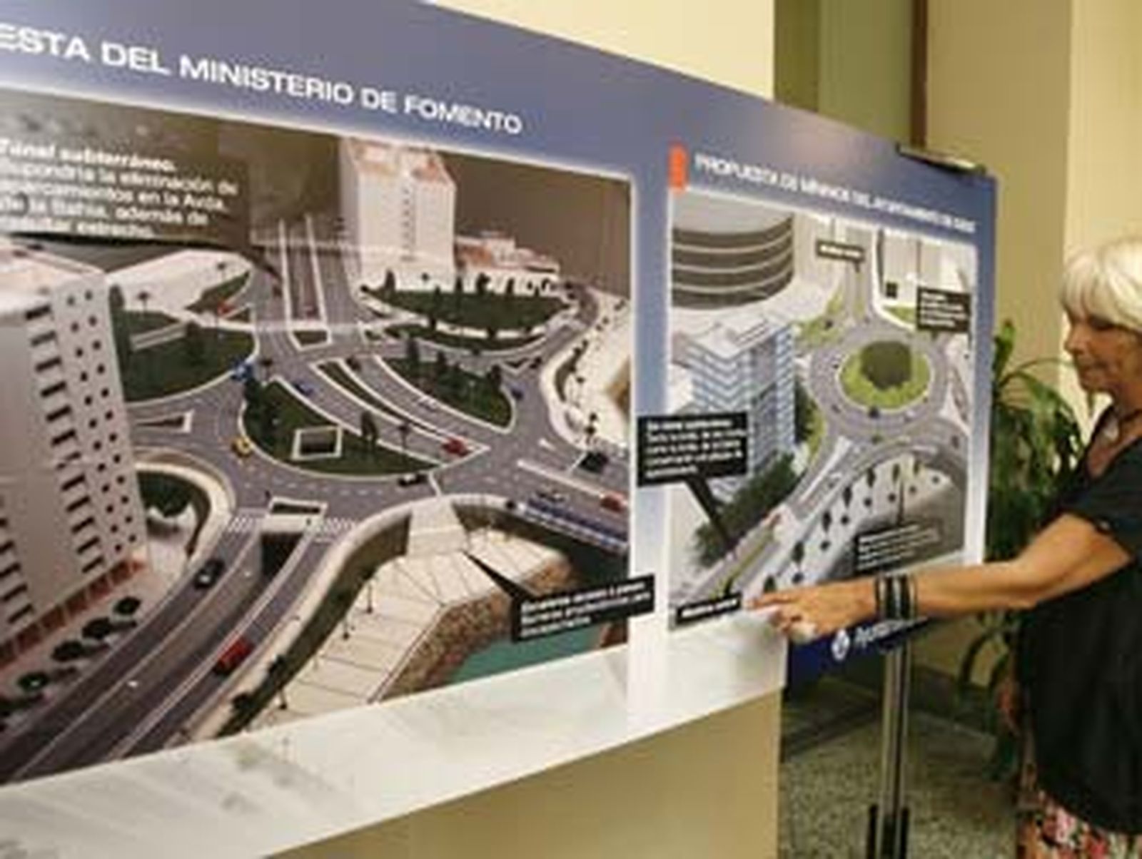 La alcaldesa presentó en una ilustración mucho menos elaborada situada junto a otra con el diseño estatal, la nueva “propuesta de mínimos” municipal. Y en ella ya se ve un leve cambio de actitud. En principio, el Ayuntamiento sostenía que el puente debería llegar a cota cero a la ciudad. Ahora mantiene que lo mejor sería que llegase con la menor pendiente posible, pero no es su principal motivo de oposición y, de hecho, la recreación “de mínimos” contempla también taludes y esa pendiente. El diseño municipal es una rotonda con tres carriles que enlace todas las vías que confluirán en la zona cuando esté listo el puente.