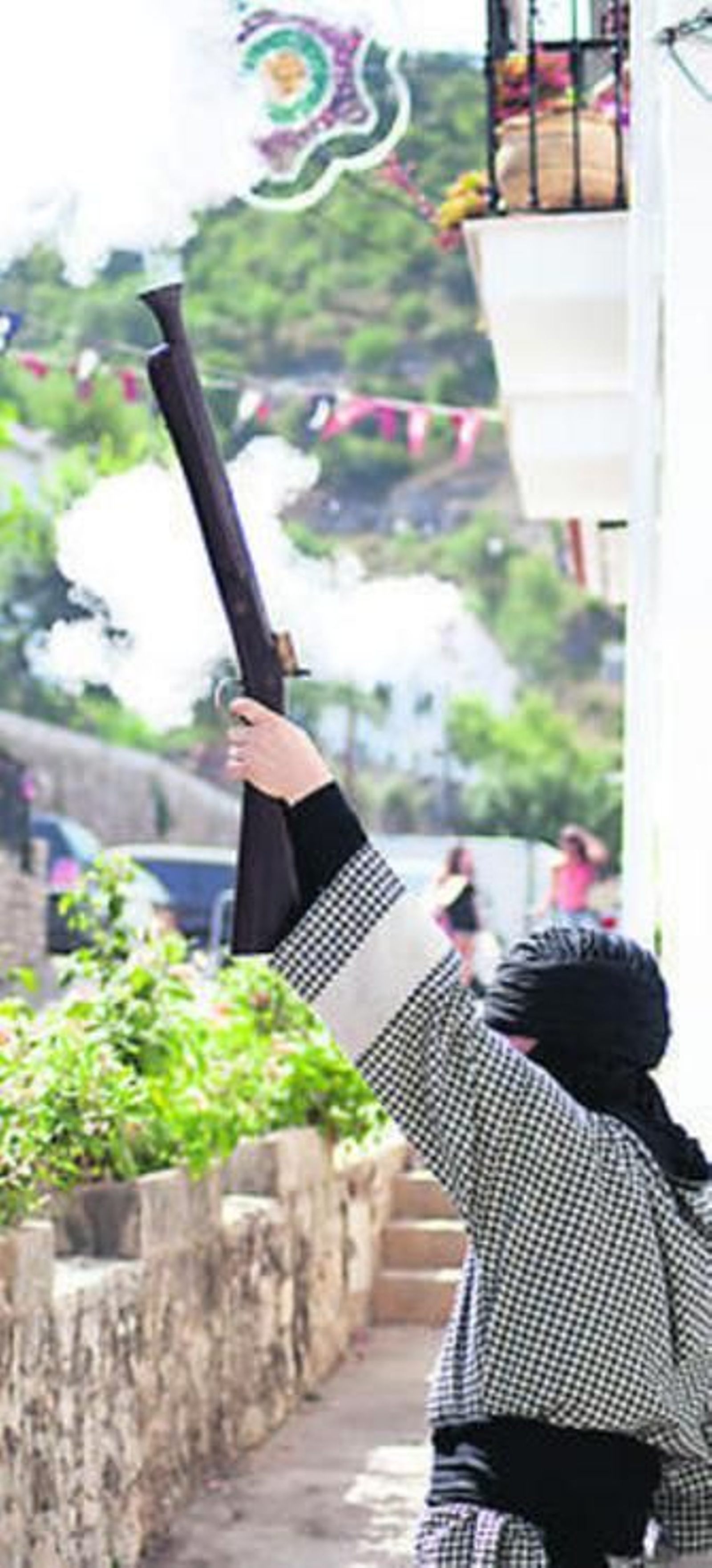En este entorno natural e histórico se organizan cada año las tradicionales fiestas de Moros y Cristianos en honor al patrón de Benamahoma, san Antonio de Padua. Este año, desde hoy viernes hasta el lunes tres de agosto, volverán a tener lugar las celebraciones, que viven su momento culminante el sábado y el domingo con las luchas entre el bando moro y el bando cristiano. No obstante, el primer contacto entre ambos bandos se producirá el viernes a las diez y media de la noche, cuando, tras haber desfilado por las calles Real y San Antonio, los dos contingentes se crucen en la plaza de toros del pueblo. Allí, el bando moro presentará su estandarte y el cristiano su pendón, acompañados ambos por la Escuela de Danza del Vientre de Toñi Domínguez para, posteriormente, citarse los reyes a la pelea. Durante este encuentro, se introduce a los espectadores en la historia que va a contarse, situada en las luchas entre las tropas árabes y las cristianas por el control de la Sierra de Grazalema. Después de aquello, las fiestas continuarán a las 23:30 con el pregón de Fiestas, que este año corre a cargo de Rafael Jiménez Añón, y con la coronación de las reinas mora y cristiana, a las doce de la noche. Para concluir el viernes, habrá bailes y verbena hasta la madrugada.