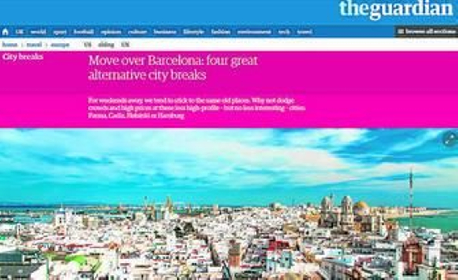 El periódico británico The Guardian publicaba este sábado 3 de septiembre un reportaje en el que propone Cádiz, junto a otras tres ciudades europeas -Helsinki, Hamburgo y Parma-, como alternativas a Barcelona para realizar una escapada de fin de semana.