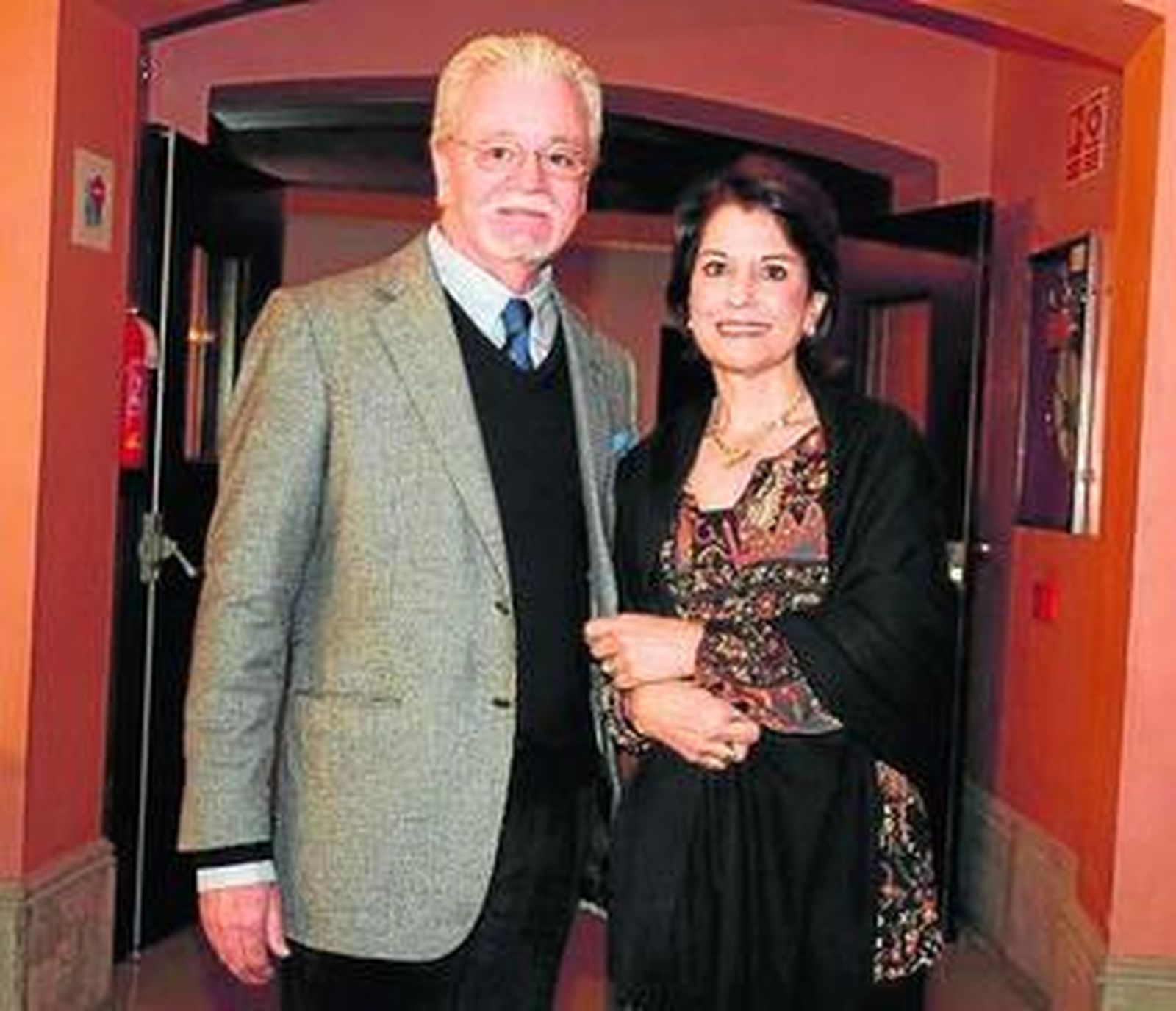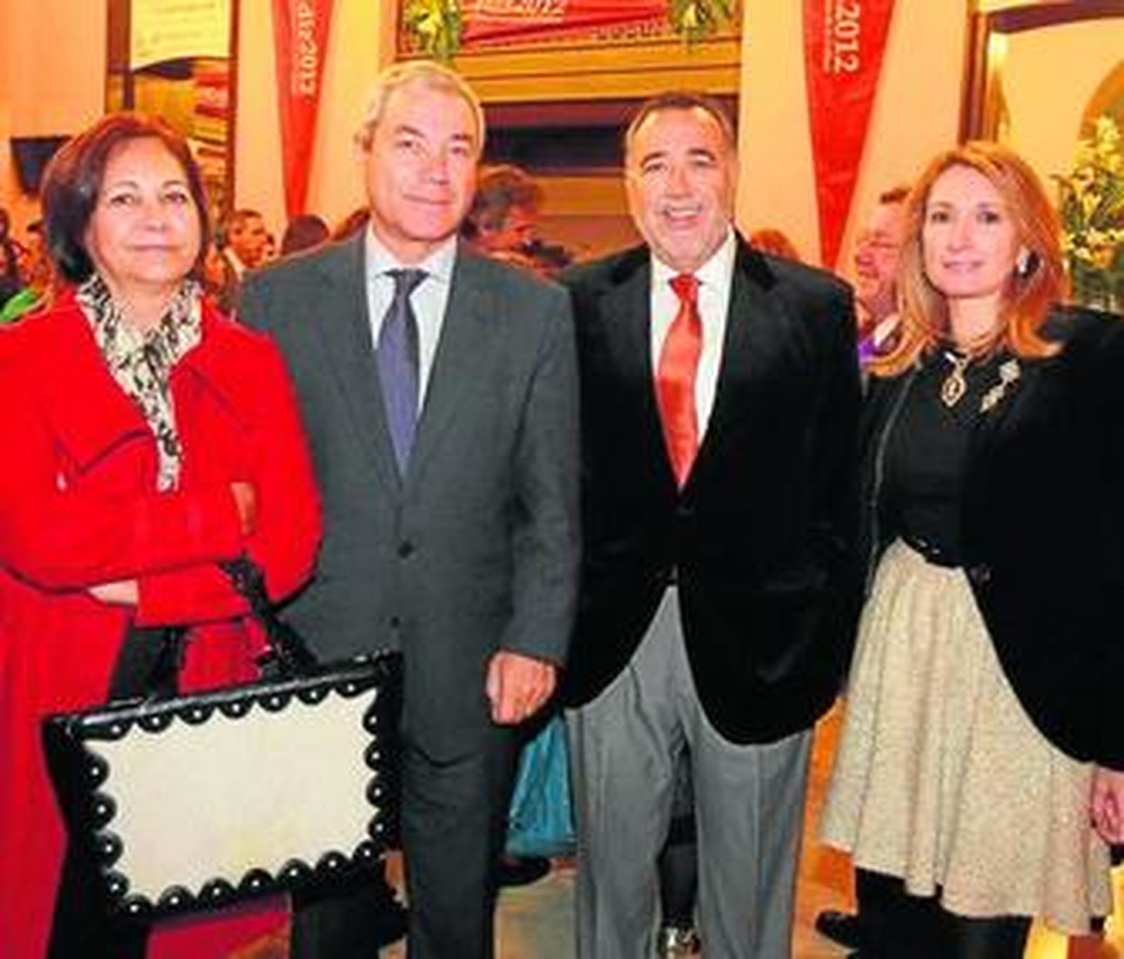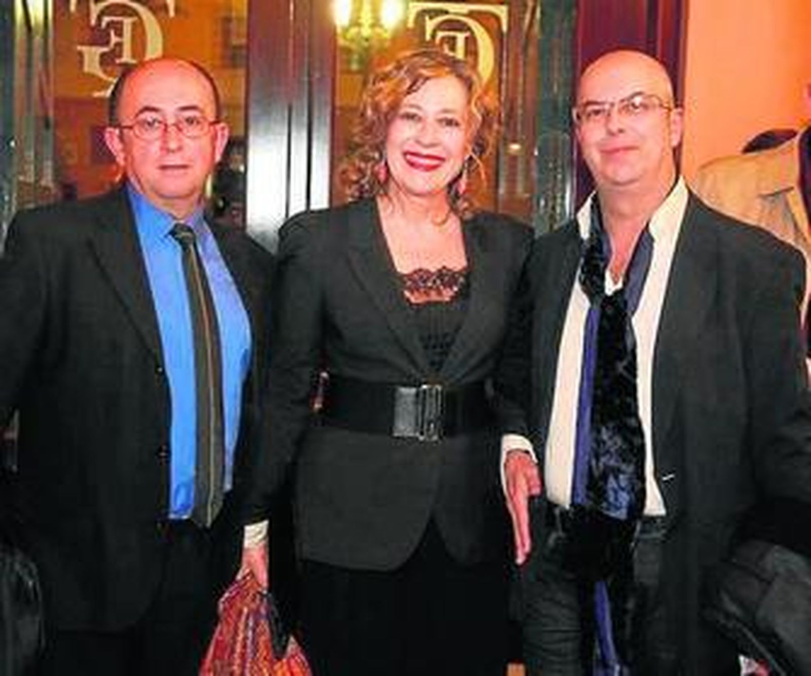 Javier Cosano y Tere Torres, acompañada por su marido Rafael Román, que se encargan del vestuario del espectáculo, no quisieron perderse la primera función y entraron con tiempo de sobra para saludar a la alcaldesa y departir en el vestíbulo del Falla.
