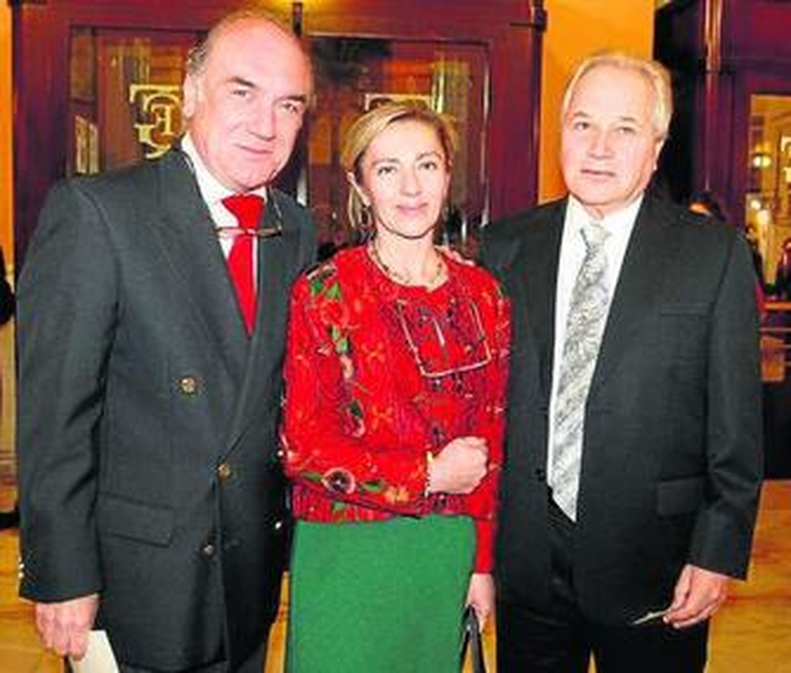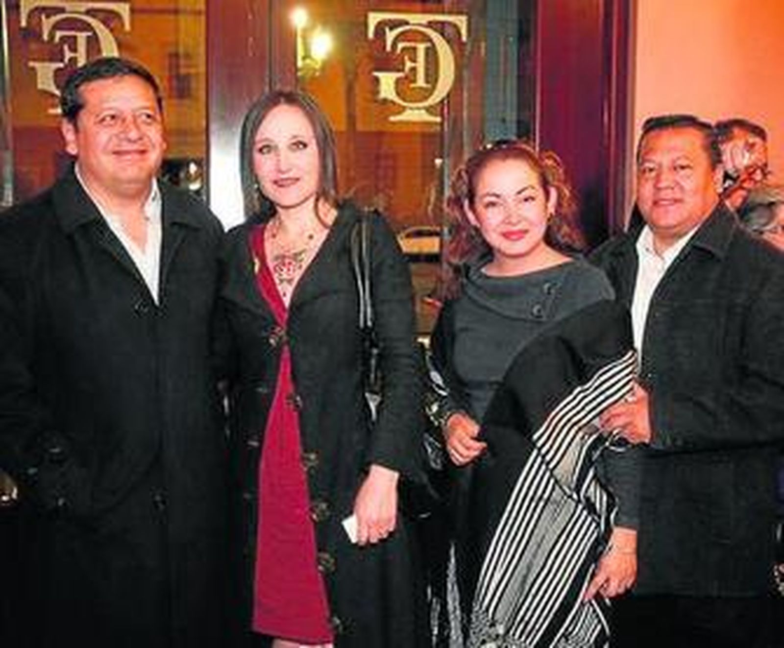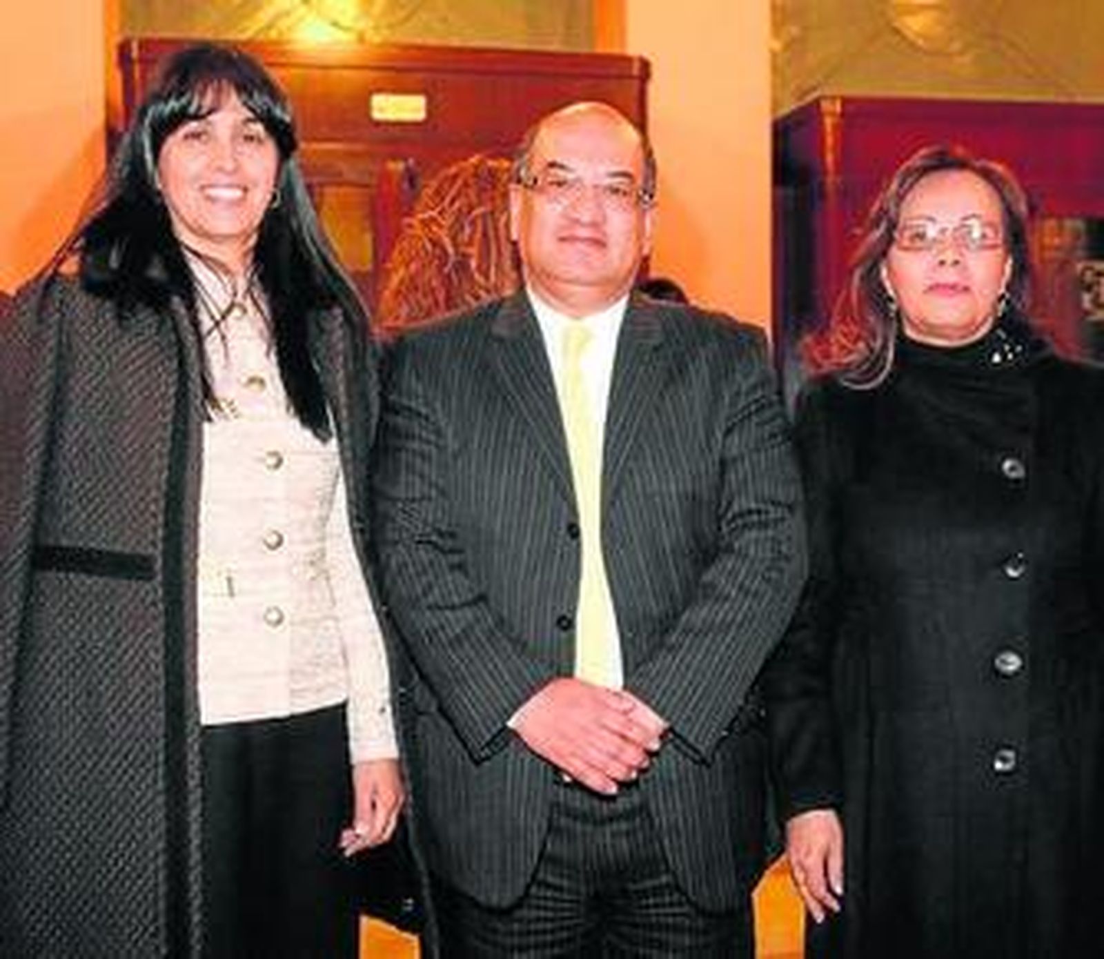 Javier Cosano y Tere Torres, acompañada por su marido Rafael Román, que se encargan del vestuario del espectáculo, no quisieron perderse la primera función y entraron con tiempo de sobra para saludar a la alcaldesa y departir en el vestíbulo del Falla.
