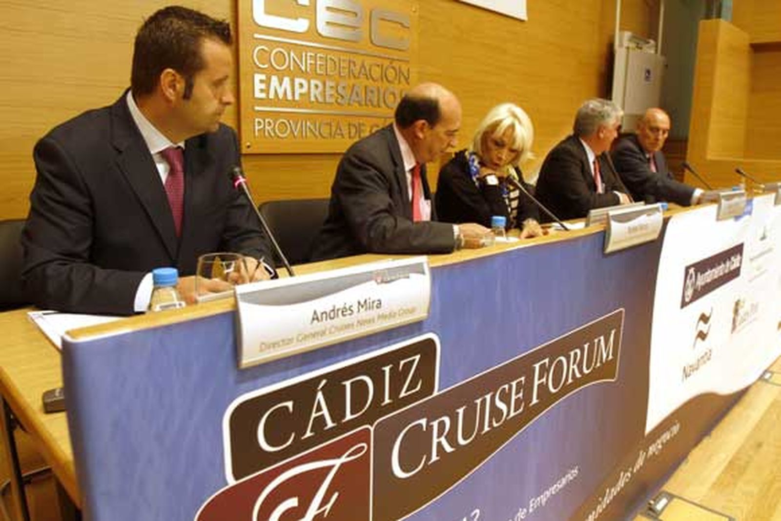 Más de 150 profesionales del sector turístico se han dado cita en la primera edición del Cádiz Cruise Forum 2012, que ha tenido lugar esta mañana en la confederación de Empresarios de la Provincia de Cádiz. Teófila Martínez, Alcaldesa de Cádiz, Rafael Barra, Presidente Autoridad Portuaria Bahía de Cádiz, Joaquín Hernández Rocha, Director Astillero Navantia Cádiz-San Fernando y Juan Bernal, Presidente Gades-Port han inaugurado el evento que ha servido para colaborar en la promoción de Cádiz como destino de cruceros y para seguir formando al tejido turístico local en su adaptación necesaria a la industria de los cruceros. Todas las autoridades han valorado positivamente la colaboración necesaria entre administraciones, puerto y empresas que Cádiz se consolide como destino cruceros.
