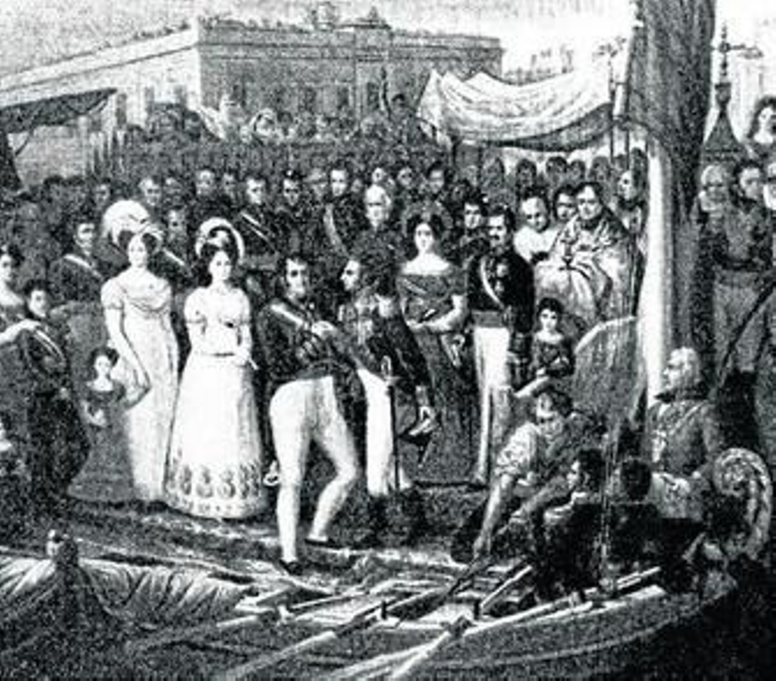 "Huyendo de las tropas del duque de Angulema, los Cien Mil Hijos de San Luis, que pretendían reinstaurar la monarquía absolutista, el Gobierno llega primero a Sevilla y después se ve obligado a trasladar al Rey a Cádiz. Como éste se negaba a venir se le declaró en "situación de delirio momentáneo", lo que le impedía para gobernar". En la ciudad se alojó en el Palacio de la Aduana, (la actual Diputación), acompañado de varios de sus hermanos.
