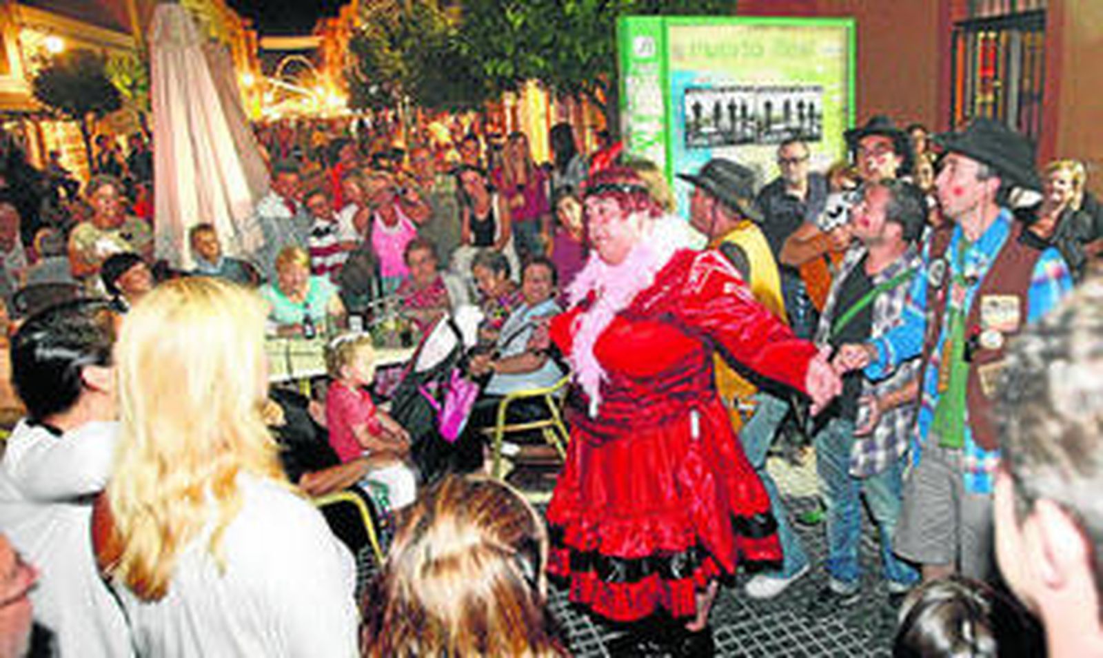 El segundo acto de este particular 'exilio' se produjo una hora y media después, donde Puerto Real recibía con los brazos abiertos y un ambientazo en la calle a los tres autobuses poblados de jaraneros viajeros, dos de agrupaciones y uno de acompañantes. En cuanto bajaron de la escalerilla se desplegaron por las calles llenando de color el fin de julio de la localidad vecina. La iniciativa resultó un completo éxito en la plaza Jesús, abarrotada de gente. La primera agrupación saltó al escenario a las once y cuarto. Prometía ser una noche larga.