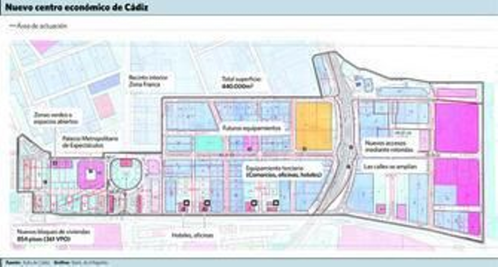 El Ayuntamiento de Cádiz y el Consorcio de la Zona Franca han puesto en marcha la nueva oficina que se va a encargar de gestionar una de las operaciones más singulares que se van a desarrollar durante los próximos años en la ciudad y de cuya acertada ejecución dependerá buena parte del crecimiento económico de la capital: la definitiva reordenación del antiguo polígono exterior de la Zona Franca, cuya transformación radical ya diseñada creará en sus 440.000 metros cuadrados de superficie un moderno parque económico complementado con equipamientos ciudadanos, zonas verdes, viviendas, comercios y nuevas vías de comunicación. Un plan de más que complicada ejecución para el que el nuevo Plan de Ordenación se da un plazo de ejecución de ocho años.