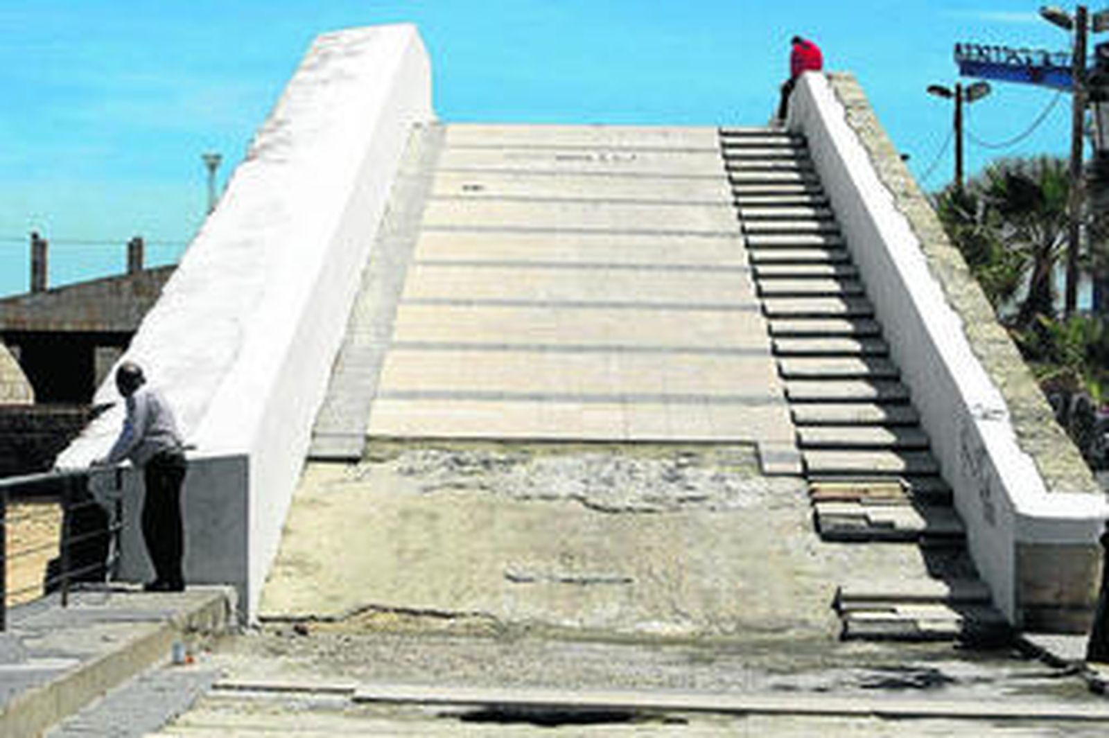 Ya en la plaza de Filipinas, nos encontramos los focos del suelo, que llevan años sin alumbrar, rotos, y una farola oxidada con los brazos agrietados, que da la sensación de que se van a caer de un momento a otro. Pero lo peor es la base de la rampa que lleva hacia la Punta de San Felipe. Da pena verla sin baldosas y un gran agujero delante. Según Enrique Carril, "hace dos años vinieron los responsables de Mantenimiento Urbano del Ayuntamiento para ver el estado en el que se encontraba para repararlo, pero sigue igual. Esto está abandonado".