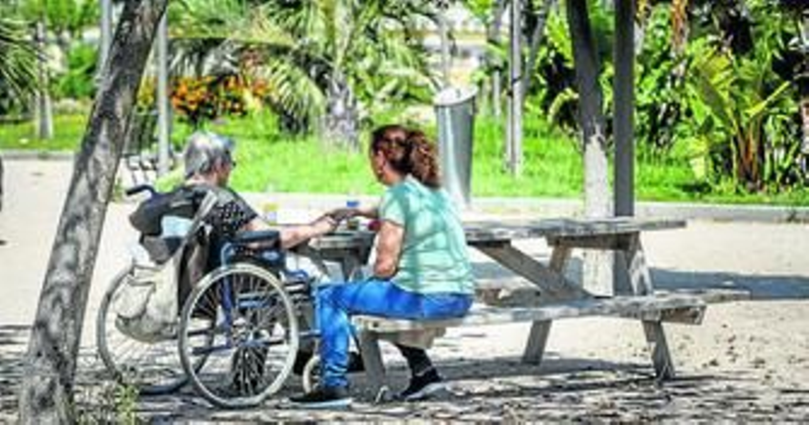Lo que no está para postales es el parque botánico Celestino Mutis, aunque algún remedio le está poniendo el Ayuntamiento al cambiar unas mesas fijas y metálicas de parchís totalmente desvencijadas y oxidadas por otras que, de momento, no tienen parchís. Un columpio roto y el corcho de las otras atracciones cubierto de una arena costrosa, ya con solera, que debe dejar más de una rasgadura de rodilla. Hay cierto descuido en el cuidado del parque, con malas hierbas que hacen su agosto en primavera. Y los protectores solares para los merenderos, que en el Ayuntamiento les dijeron a los vecinos que a lo mejor, no están por ninguna parte.