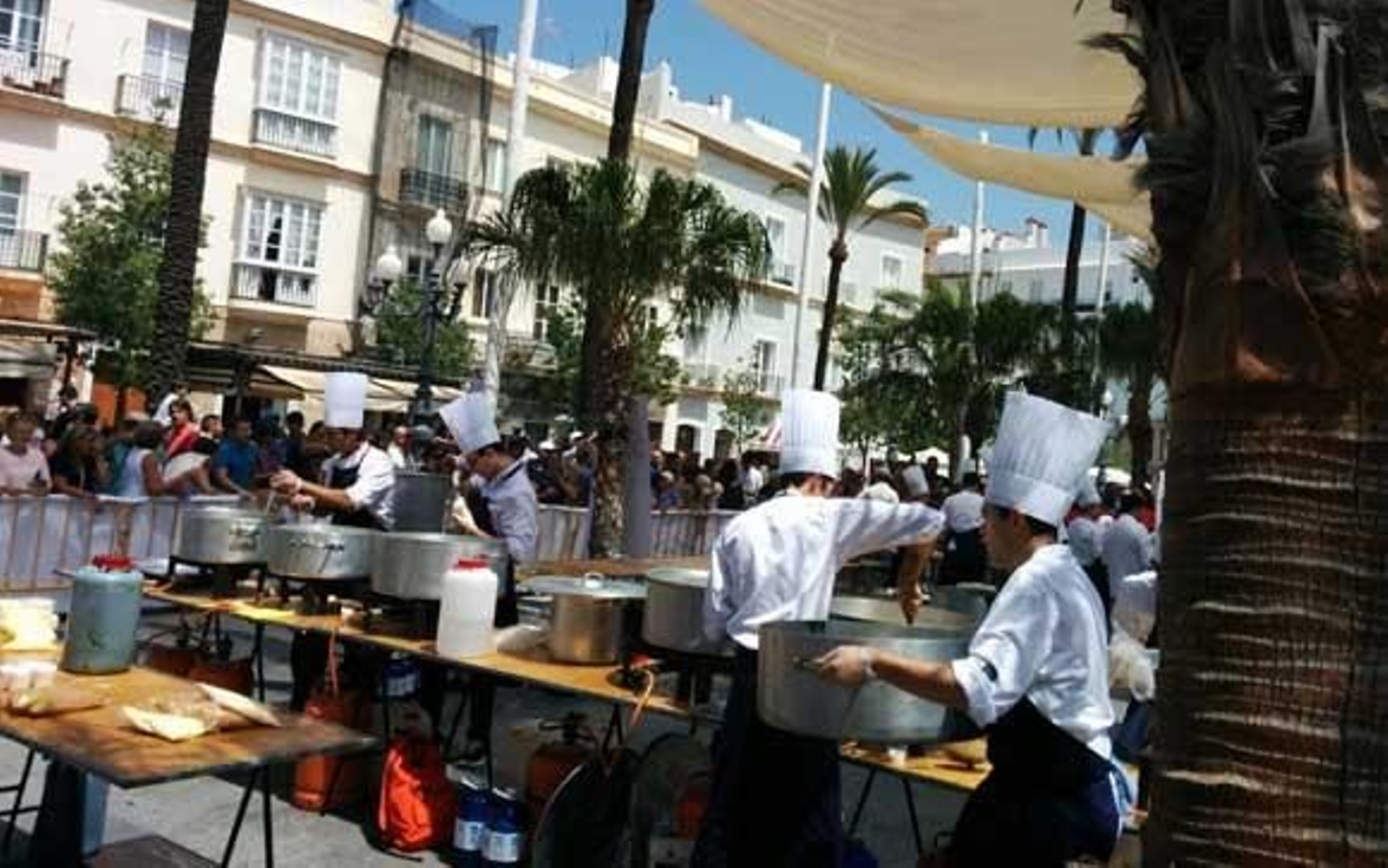Cientos de personas guardan cola para degustar el arroz con plancton preparado por el prestigioso cocinero Ángel León y su equipo del Aponiente. Los beneficios se destinarán a las asociaciones Mujer Gades e Interforma