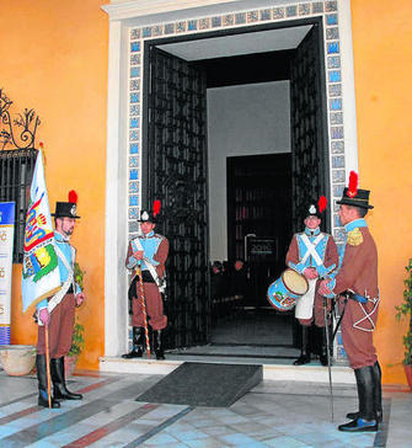 El acto de ayer, presentado por el periodista de Canal Sur Fernando García, contó con la escolta de una representación de la Guardia Salinera, que llamó la atención del público no isleño.