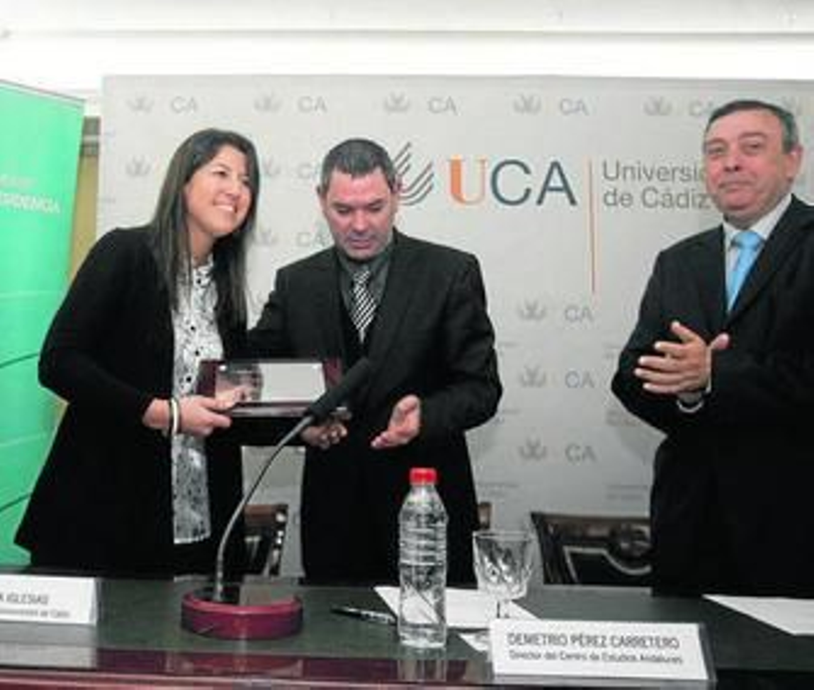 Marcela Iglesias es el nombre de la investigadora de la Universidad de Cádiz (UCA) que ha obtenido el V premio a la mejor Tesis Doctoral 2009. Un reconocimiento que concede el Centro de Estudios Andaluces, perteneciente a la Consejería de la Presidencia de la Junta de Andalucía, y cuyo director, Demetrio Pérez, entregó ayer una placa a la homenajeada en un acto celebrado en el Rectorado y presidido por el rector, Diego Sales.
