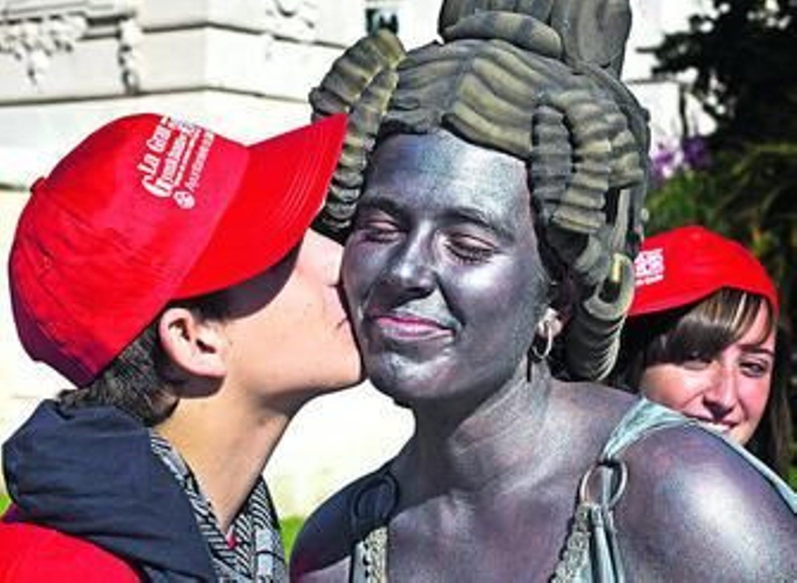 En la plaza de España, uno de los personajes más atrayentes tanto para los participantes como para los turistas, la figura principal del monumento a las Cortes. Un mensaje cifrado en la espalda sobre la cuna de la libertad y otro salto en busca de más enigmas.