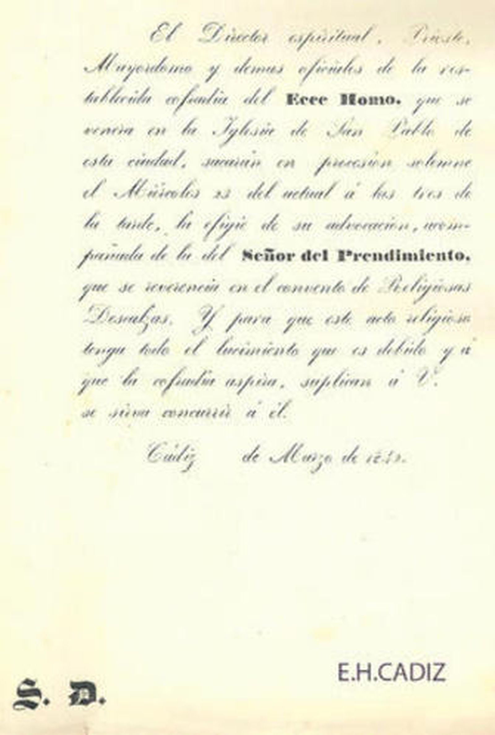 El vía crucis del domingo es un vía crucis del todo extraordinario, simplemente teniendo en cuenta que habrá imágenes de diferentes localidades gaditanas recorriendo la ciudad. Ese día se verán imágenes y pasos más que interesantes, y se producirán de hechos y datos para esa historia que con tanto mimo cuidan los cofrades. Pero quizá la nota más destacada sea la salida en procesión del Cristo del Prendimiento de las Descalzas. Una portentosa talla del siglo XVII que siglos atrás fue titular de una cofradía y que siempre ha estado rodeado de cierto misterio.