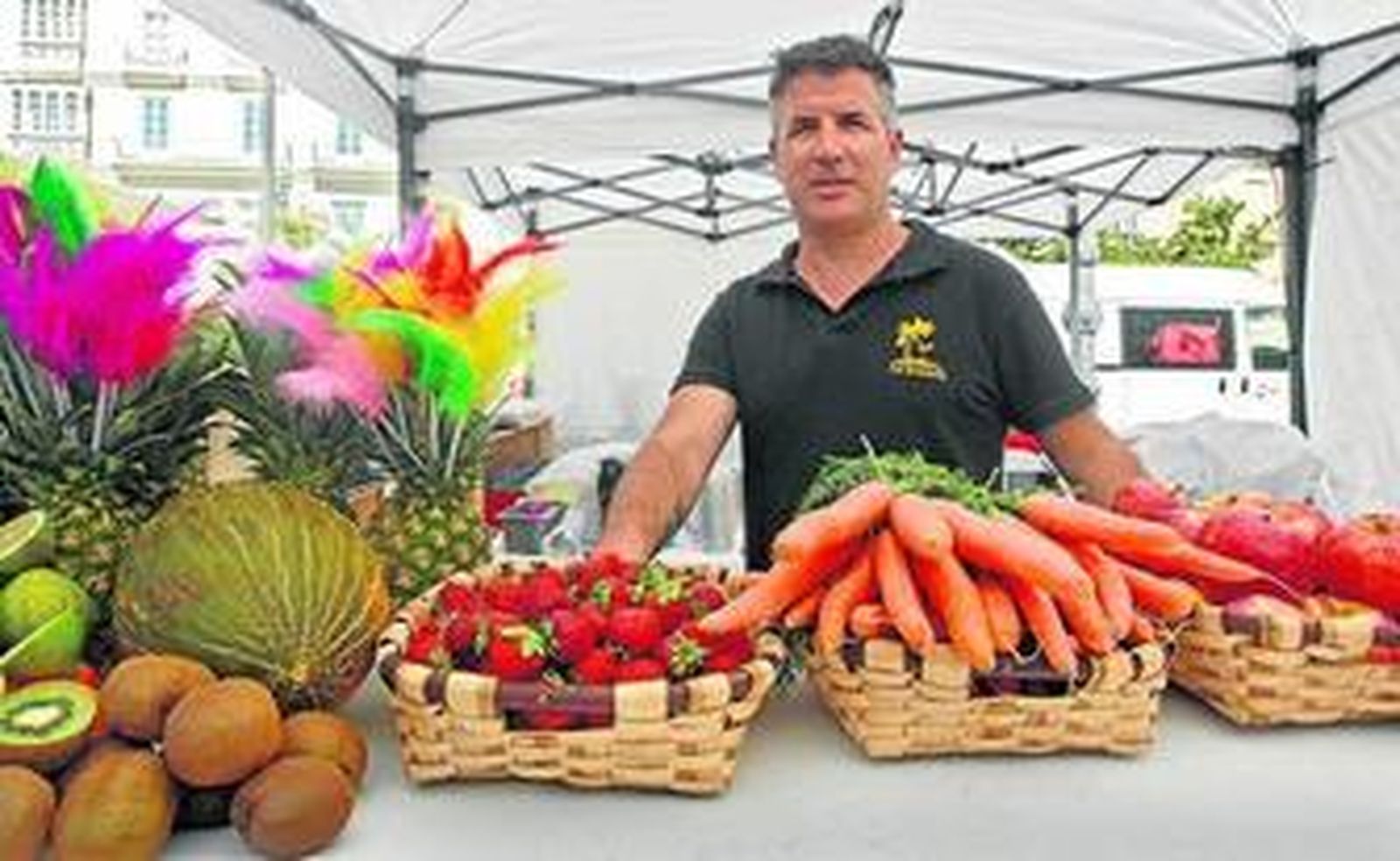 Ramón Aguiar, de La Ronería del paseo marítimo de Valdelagrana, ultima la puesta a punto de su stand. Este bilbaíno que lleva 15 años en El Puerto ofrece zumos naturales y cócteles. A la vista, sandías de Chipiona y melones de Sanlúcar. Productos de la tierra "y a ser posible, ecológicos". Aguiar reconoce que la coctelería está en pleno auge. Apuesta por esta iniciativa. "Es la primera que vez que exponemos en Cádiz, pero nuestra intención es seguir con los productores en octubre en Sevilla. Es una idea muy buena. Todo lo que sea apoyar a los productores será bueno para la provincia", señala.