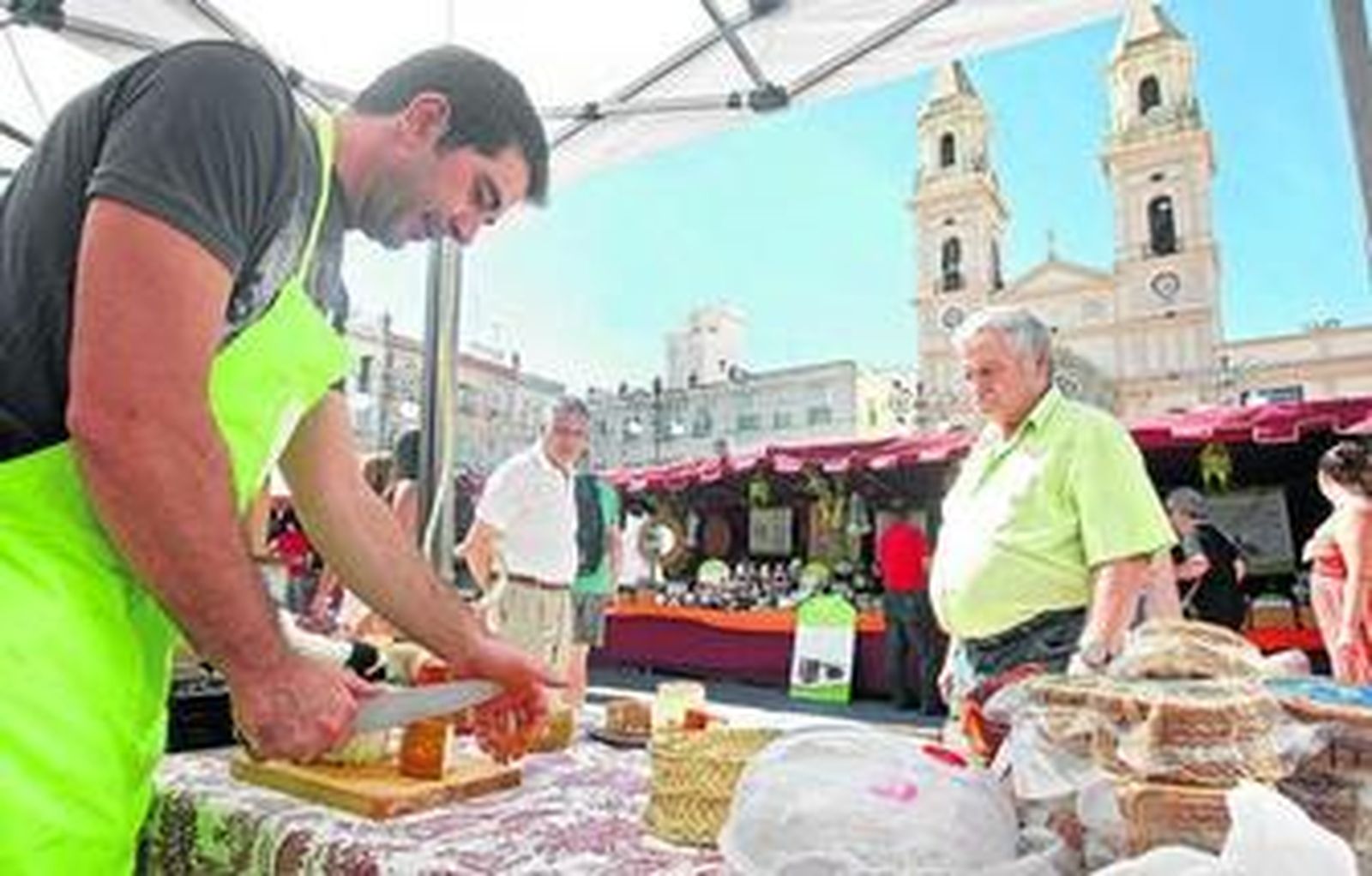 "Bienvenidos al paraíso del sabor". Un hombre vocea las excelencias de sus quesos, los de la Cañada del Capitán, de Vélez-Málaga. El género que ofrece atrae. El público lo prueba y compra. Entre los quesos están los que han conseguido el primer premio en tierno de cabra y en curado de cabra con leche pasteurizada en el VIII Concurso Andaluz de Quesos Tradicionales 'Sierra de Cádiz' celebrado en Villaluenga este año. A la entrada del Mercado Andalucía de Productores en la plaza de San Antonio, inaugurado ayer, se palpa ya la calidad de las empresas que exponen. Nada más inaugurarse, a mediodía, hay un gran ambiente de público. La variedad invita a probar y a dejarse unos euros.