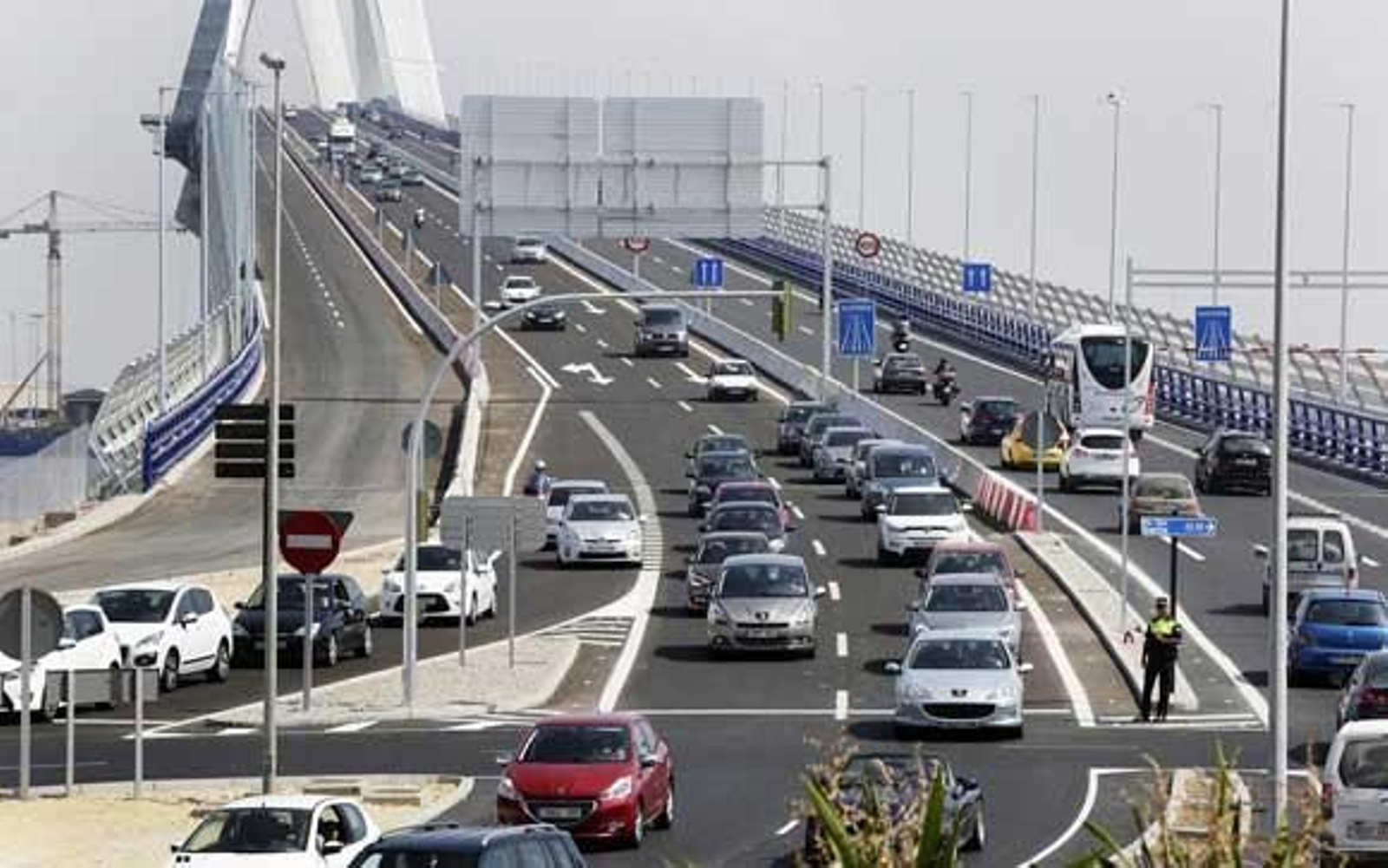 El nuevo puente sobre la Bahía de Cádiz ha vivido hoy su primera jornada matinal de tráfico rodado sin incidentes aunque con tráfico denso debido a la confusión de muchos conductores con las nuevas señalizaciones y a que en los dos accesos aún se están realizando labores de mantenimiento.