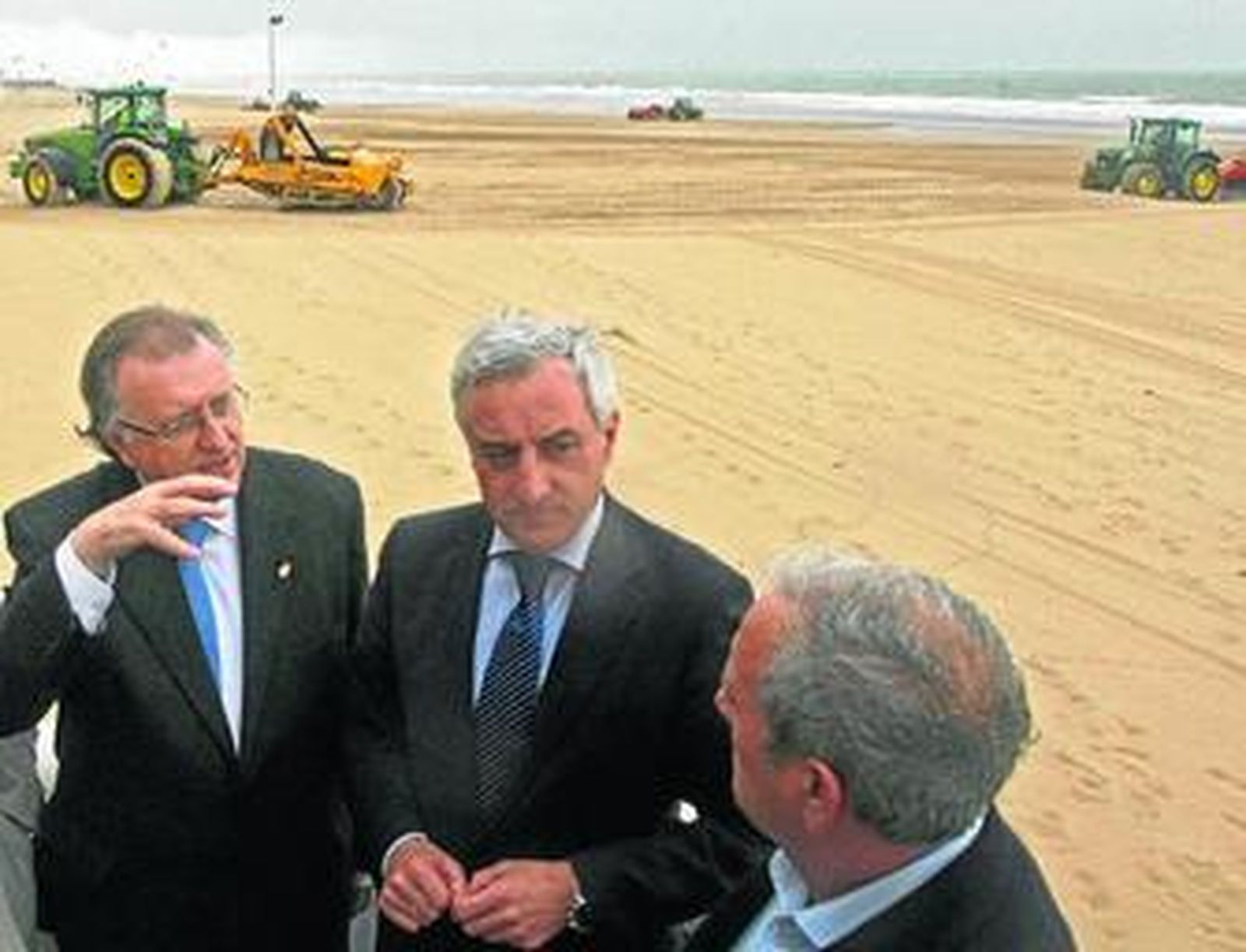 El secretario general del Mar anduvo por la playa, donde ya se afanan en nivelar y repartir la arena convenientemente varias excavadoras, no sin antes comentar sus impresiones con los medios de comunicación. "El gobierno se ha comprometido a que estas playas afectadas por el temporal estén preparadas para el disfrute de los ciudadanos al máximo para la temporada estival y en aquellos casos que sea posible, teniendo en cuenta las condiciones meteorológicas, que también lo estén para Semana Santa".