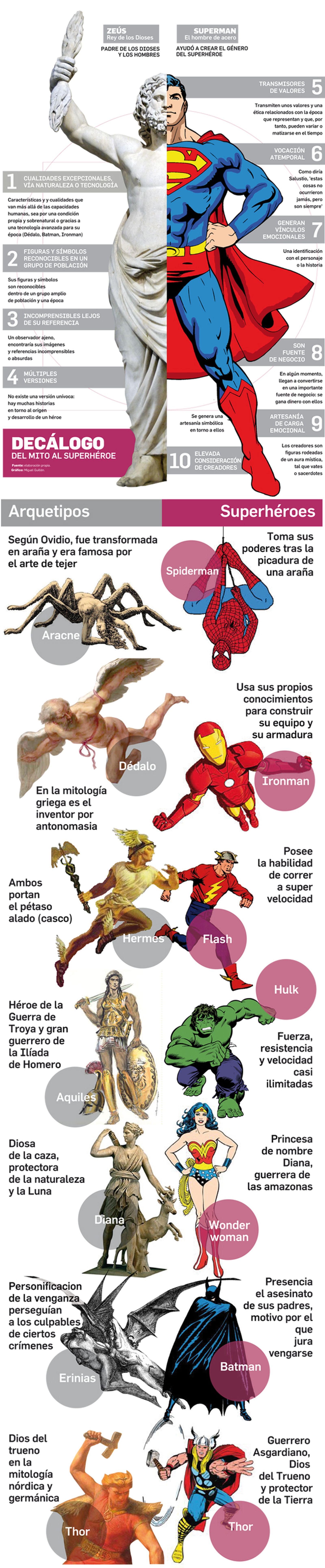 Héroes clásicos y superhéroes contemporáneos comparten una estructura que los convierte en mitos atemporales Internet, cine y televisión han convertido a los personajes de cómic en referentes del imaginario