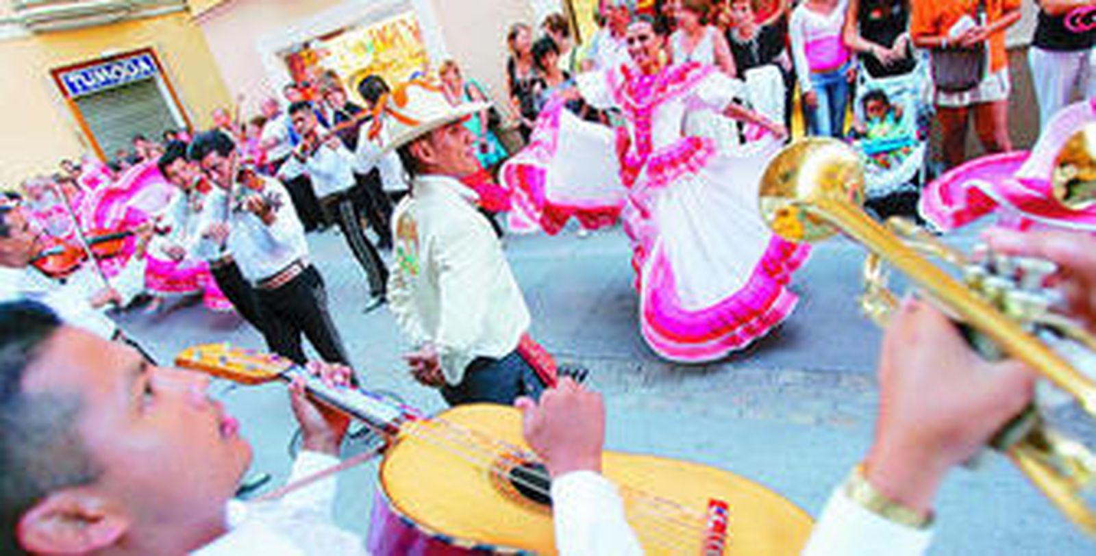 El Festival Internacional de Folklore desfila por la capital · Las rancheras mejicanas, los ritmos latinos y las guitarras españolas al son de tanguillos encuentran un punto de unión para crear una mestizaje único