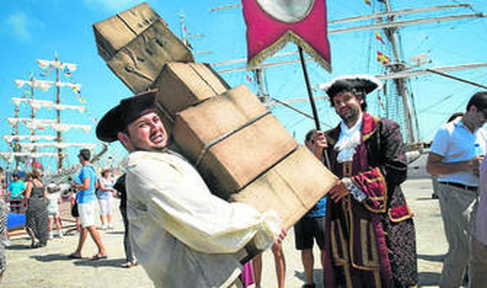 "Venimos representando el momento en el que Felipe V en 1729 vino a Cádiz a ver el espectáculo que suponía la salida de la flota de Indias. Según las crónicas de la época, la ciudad se engalanó para recibirlo porque fue él quien firmó el traslado de la Casa de la Contratación de Sevilla a Cádiz", explicó Javier Benítez, integrante de este grupo que conectó de forma positiva con el público durante la jornada inaugural de ayer. No les quedaba otra a los visitantes, pues estos intérpretes dejaron a un herido de combate a la intemperie y dejaron en manos de los asistentes que aquel hombre pudiera cumplir su sueño de embarcarse en un velero. Sin duda, las risas estaban aseguradas con estas y con muchas otras actividades. "Haremos escenas para explicar al público por qué estamos aquí, presentaremos a algún personaje y nos distribuiremos por el muelle para a partir de ahí realizar improvisaciones a partir del contexto y el guión de cada personaje", aclaró Benítez.