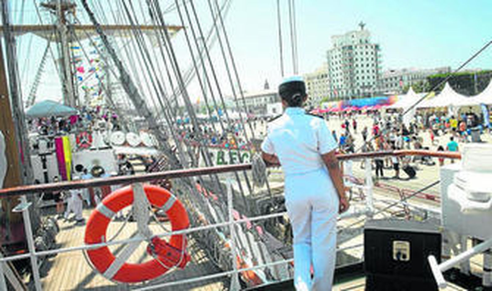 Los visitantes que abarrotaron el muelle desde primera hora fueron recibidos por un estruendoso canto de las sirenas de los navíos. Todos al unísono celebraron la inauguración oficial del evento bien pasadas las doce del mediodía. Las colas en los barcos no se hicieron esperar y fue el 'Cuathemoc' de México uno de los más solicitados, tanto por su imponencia como porque al principio de la fiesta otras embarcaciones habían decidido tomarse su tiempo para abrir el día.