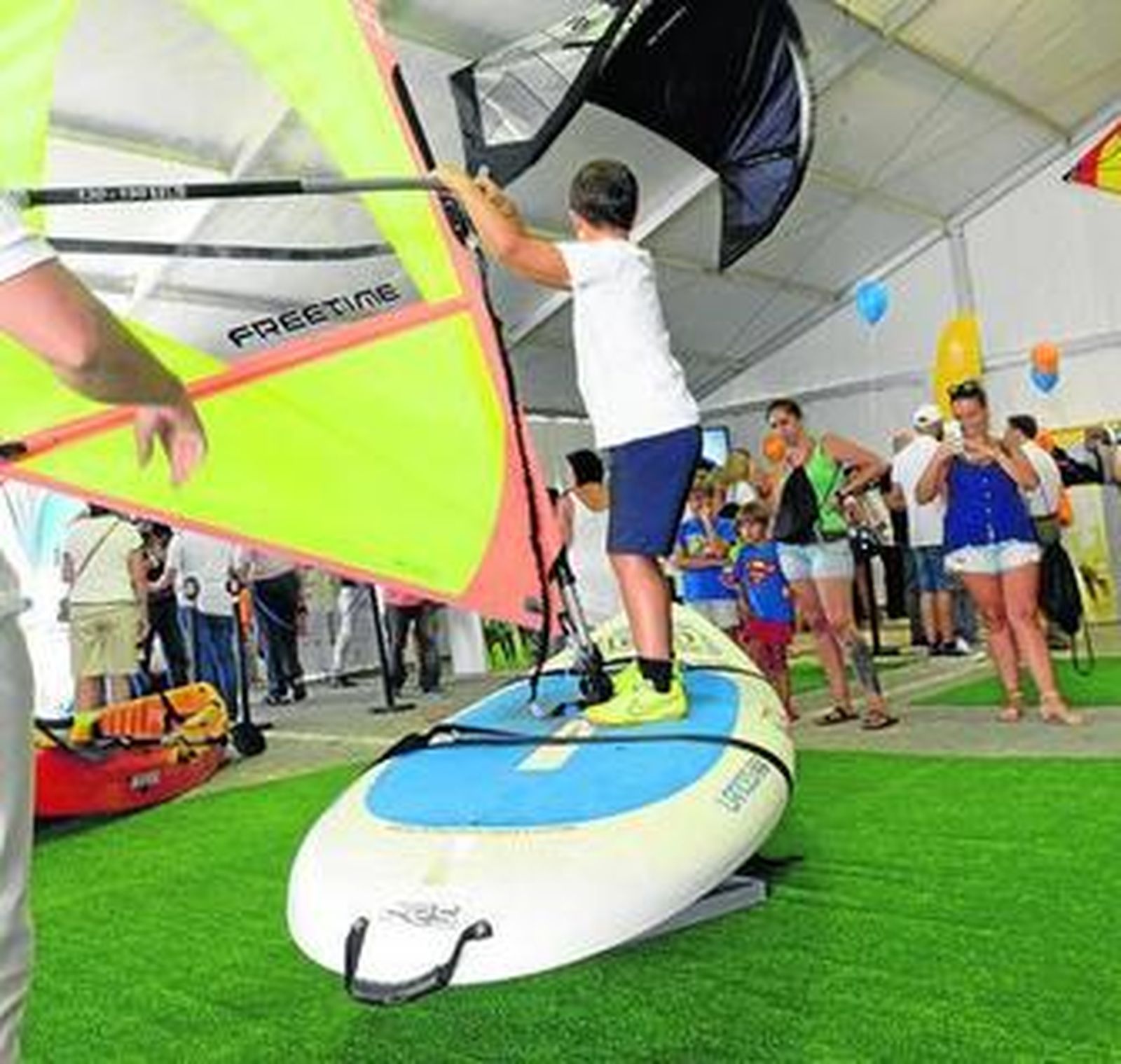 En la carpa 1 el trasiego de público era constante. De manera clara y sencilla se visualizan todos los grados y másteres que ofrece la universidad gaditana para el próximo curso, divididos según el área de conocimiento y con información sobre las facultades donde se imparten. En el centro se desarrollan varias simulaciones deportivas para aprender a utilizar un skate, una tabla de windsurf o un kayak, y en las que niños y mayores demostraban, con más o menos pericia, sus habilidades.