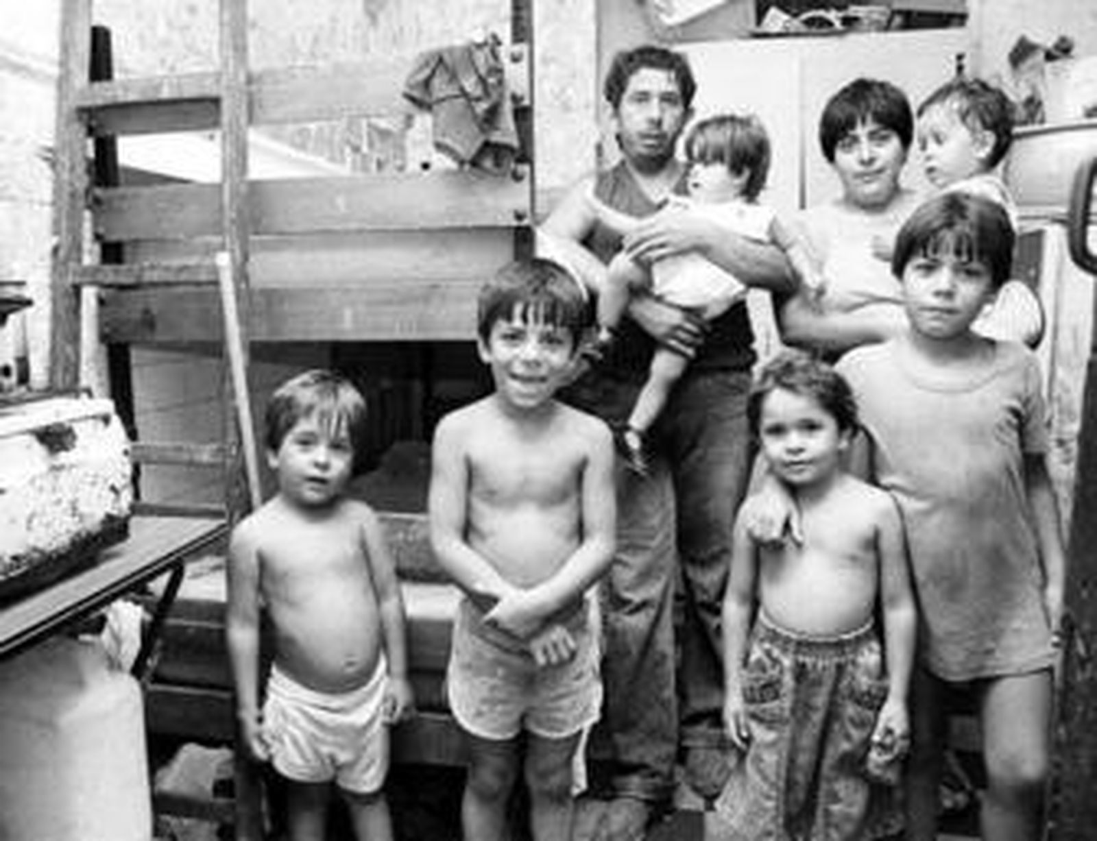 Agosto de 1989. Diario de Cádiz publica un informe sobre la infravivienda, antes de que este problema se aupase a los primeros puestos de la preocupación de las administraciones públicas en la ciudad. Como ejemplo, la familia Guerrero Jiménez. "Una destartalada litera, tres muebles, una silla, un pequeño frigorífico y un hornillo sobre el cual hay una pequeña olla quemada ya por un uso excesivo, son los bienes materiales de la familia. Tienen la fortuna de contar con luz eléctrica pero adolecen de agua corriente", relataba el reportaje de este periódico ilustrado por una foto familiar donde, a pesar de la miseria, algunos de los pequeños aún eran capaces de esbozar una sonrisa. Imagen captada por Joaquín Hernández Kiki que formó parte de la reciente exposición organizada por el reportero gaditano. Fue una de las más comentadas de la muestra, como ejemplo de un Cádiz que dejaba traslucir todas sus tragedias e injusticias.