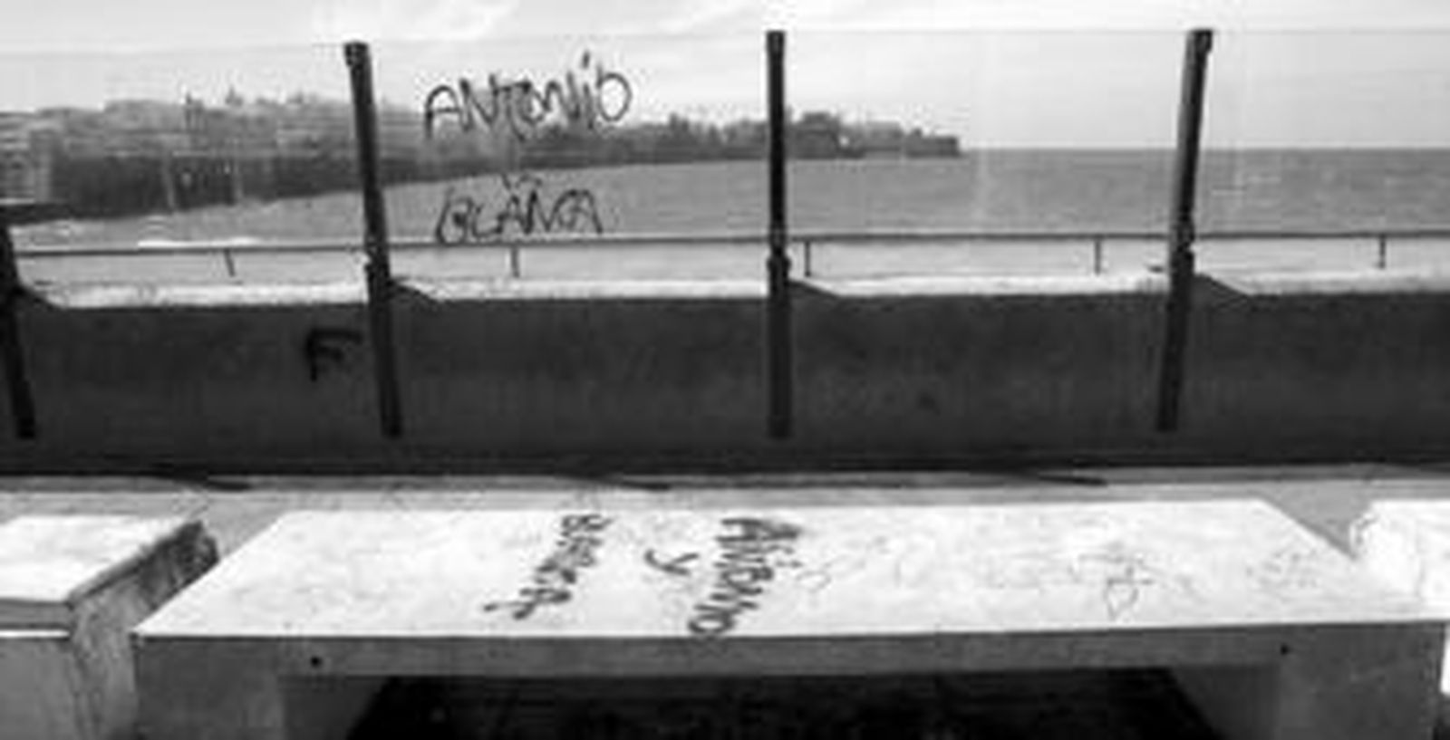 El lugar destinado a botellódromo en Cádiz, ubicado en la parte superior de los bares de La Punta de San Felipe, ya sufrió daños vandálicos en agosto del pasado año, apenas unas semanas después de que se colocaran unas pantallas de cristal para separar el paseo del lienzo de la muralla y proteger en cierta medida a los jóvenes que se reúnen allí. En ese verano se rompieron algunos de los cristales y se empezaron a efectuar pintadas. El aspecto actual no es muy distinto: las cristaleras están repuestas, pues sólo una presenta un pequeño impacto y una fractura en su parte posterior, pero las pintadas se han extendido a lo largo de prácticamente todas las mamparas.