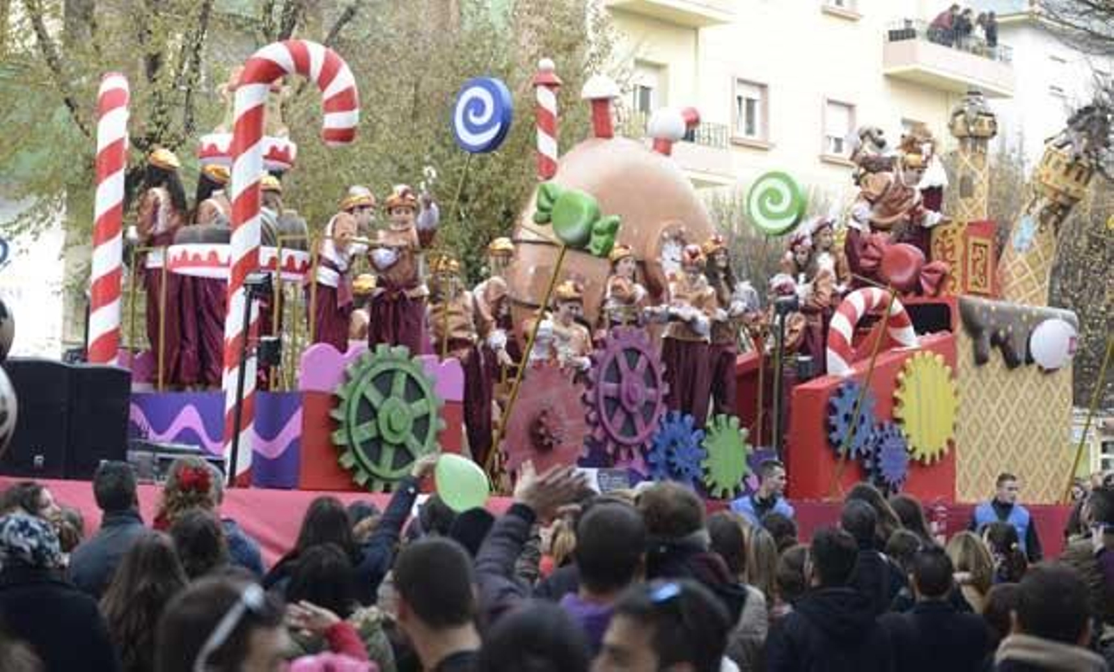 Tras él, otro mínimo desfile, esta vez de duendes, muñecos de nieve, Papá Noel, el Capitán Garfio y Peter Pan, entre otros. Gaspar iba en una carroza que representaba unas torres de galleta donde se había derretido chocolate con piruletas y bastones de caramelos.