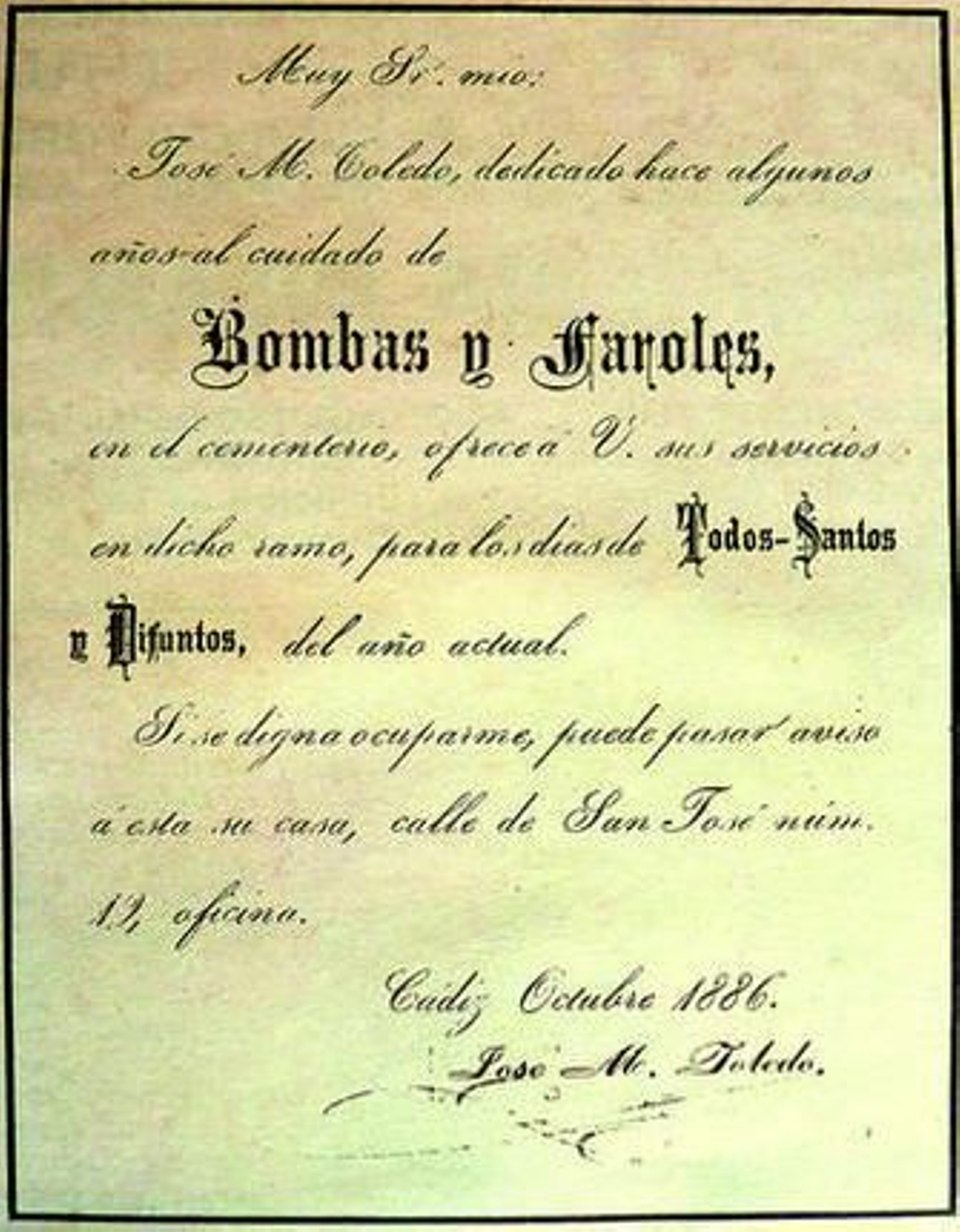 Cuenta el historiador Moreno Criado sobre la obra del religioso descalzo fray Jerónimo de la Concepción, titulada Emporio del Orbe -Cádiz ilustrada-, que "la primera ciudad de España, que dio sepultura a sus difuntos enterrando a sus cadáveres fue Cádiz". Cierto o no, lo que está fuera de toda duda es que nuestra ciudad supo rendir siempre el debido tributo a sus difuntos. Las innumerables batallas que sostuvo a lo largo de su historia para defenderse de saqueadores y las terribles epidemias que sufrió en diversas ocasiones, con un importante número de víctimas, causó un efecto desgarrador en la población, ante cuya adversidad no quedó otra opción que el rendir el debido homenaje a sus muertos, enterrando los cadáveres.