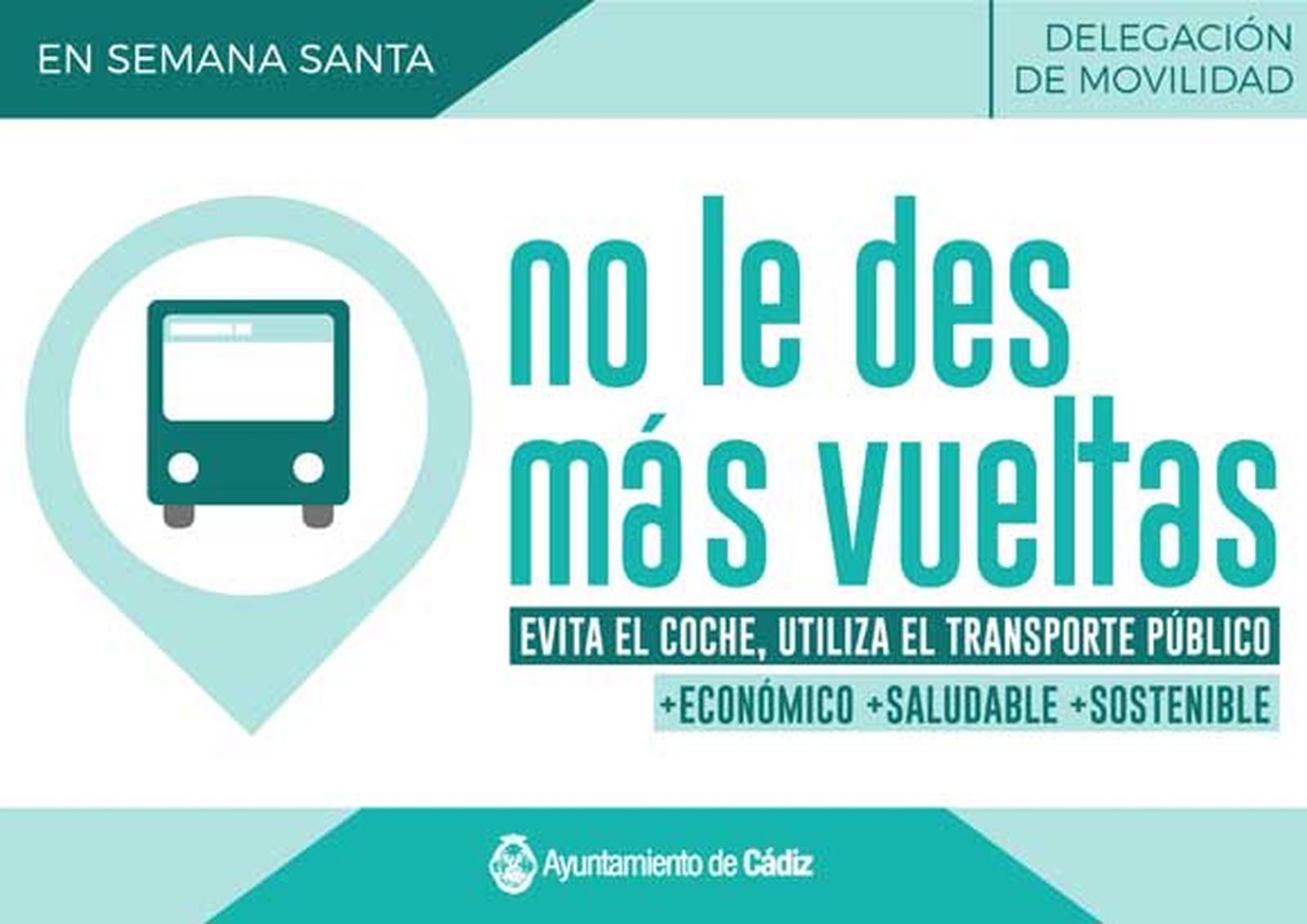 El Ayuntamiento de Cádiz ha anunciado que va a impulsar una campaña de fomento del uso del transporte público en la ciudad durante la Semana Santa 2016 bajo el lema 'No le des más vueltas'.