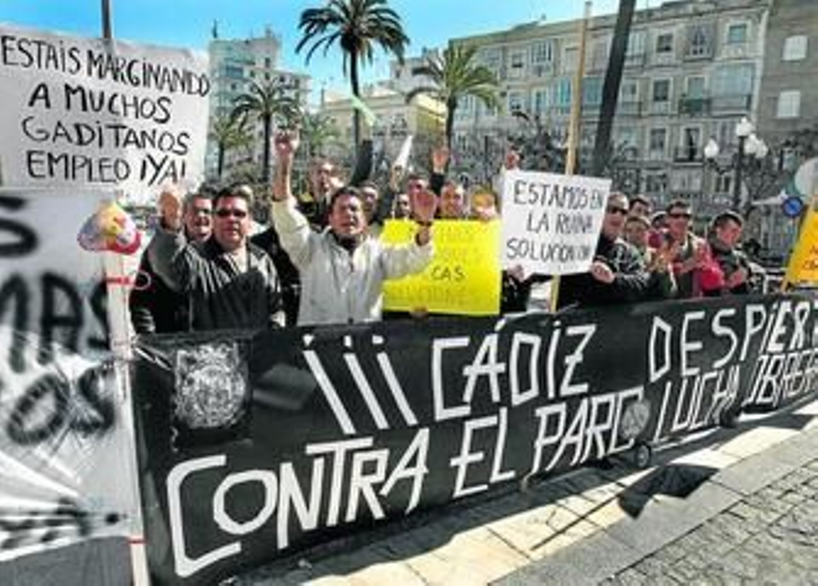Detrás de cada desempleado que desde el 8 de marzo se concentra frente el Ayuntamiento hay un drama familiar, una frustración personal, un grito de auxilio. Son 30. A veces 40. Pudieran ser más, que los hay. Pero son ellos los que se han constituido en plataforma. 'Parados de Cádiz Capital 2010' se hacen llamar. Hacen ruido frente al Consistorio porque consideran que en la casa de todos los gaditanos está la solución a sus problemas: las obras civiles, muchas de ellas orientadas al Bicentenario. Y las enumeran: la tribuna del Carranza, el nuevo Hotel Atlántico, el Oratorio San Felipe Neri...