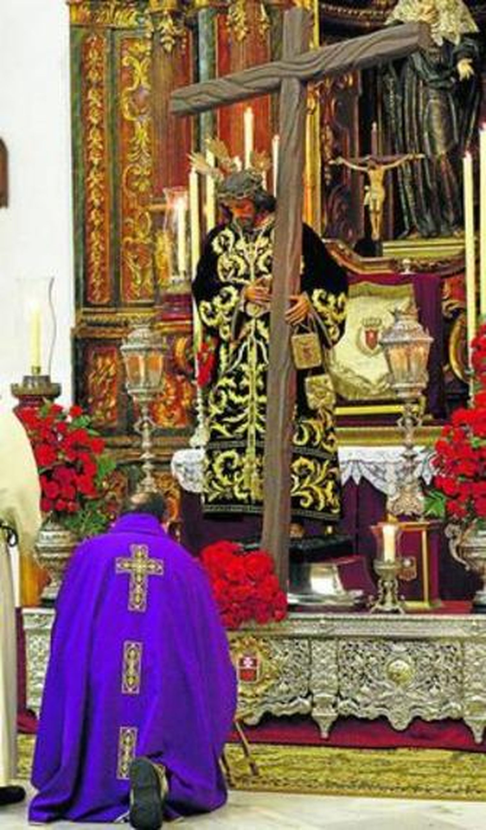 En un curioso altar en el centro del patio de San Antonio comenzó la Cuaresma este nazareno, que al día siguiente presidía el templo con un llamativo altar de cultos. Allí se celebró un triduo en su honor que dará paso quizá al culto más destacado que tendrá la imagen esta Cuaresma: el vía crucis que presidirá el Viernes Dolores y que se desarrollará por las calles cercanas a la parroquia.