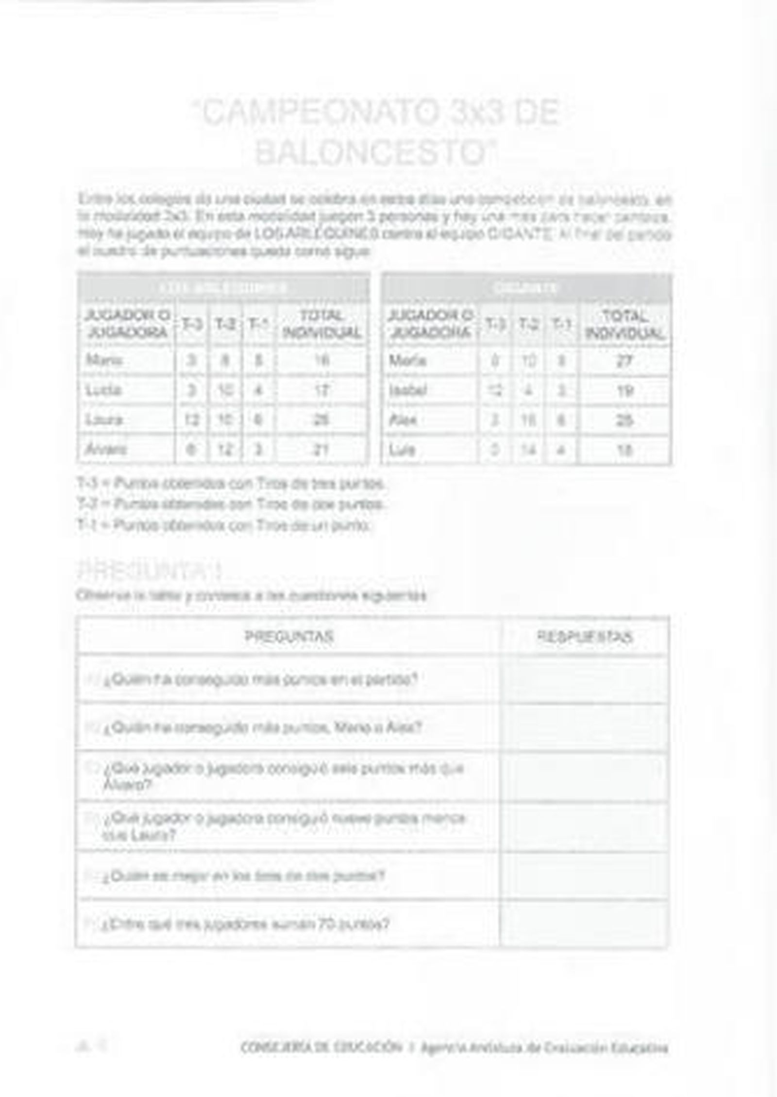 Agaeve tiene un concepto pobre de lo que saben los niños andaluces, dando pábulo a la leyenda negra. Niños de Cuarto (9 años) han de rellenar unos gráficos propios de Infantil. En otra cuestión hay un listado de puntos que han conseguido los niños en un partido de baloncesto. Preguntan qué niño ha obtenido más puntos, o cuál de los dos, Mario (16 puntos) o Álex (sin acento, pero con 25 puntos), ha obtenido mayor puntuación. También han de ordenar, de mayor a menor, cinco países en función de su número de colmenas, que viene expreso. ¿Qué se diagnostica con esto? ¿Qué competencia se mide?