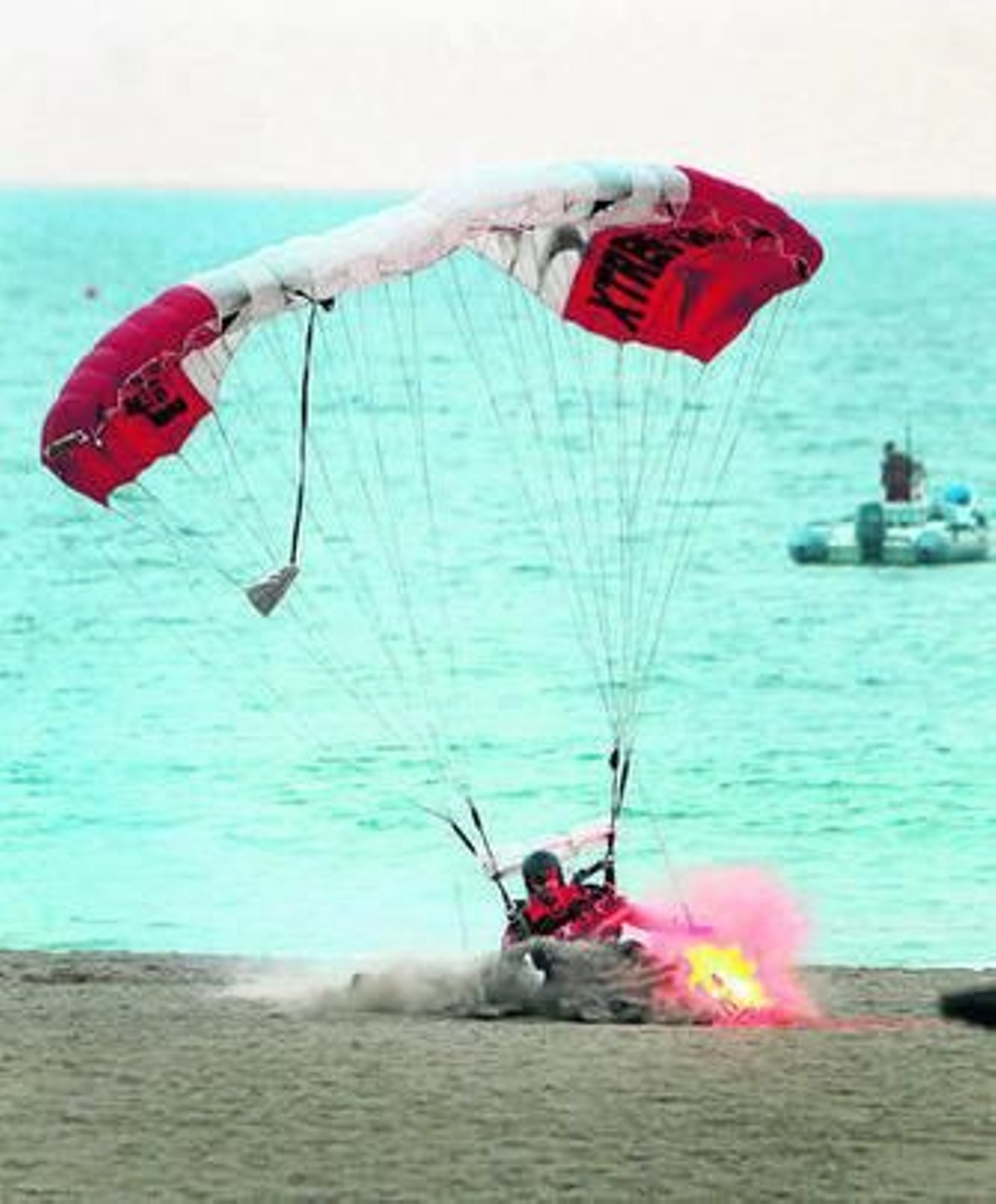 Los paracaidistas de 'Extreme' aparecían del cielo como aves. El aterrizaje se realizó a unos niveles de velocidad bastante altos, tanto que el último paracaidista en entrar en contacto con el suelo arenoso acabó sufriendo un leve percance al caer estrepitosamente. Aunque felizmente solo se trató de una anécdota que contar y no de un accidente.