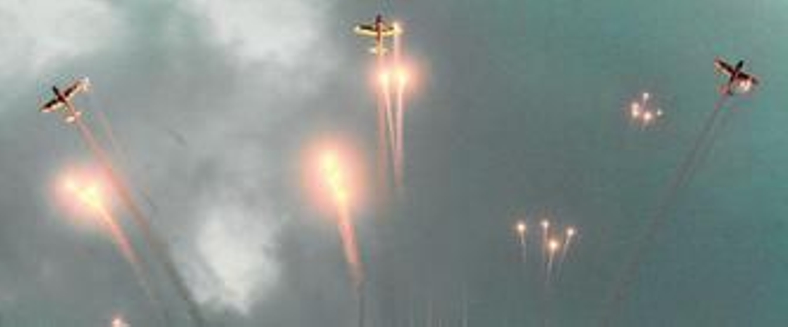 El ánimo del público se acrecentaba por momentos y las emociones respondían más a sensaciones tangibles que pudieran notarse verdaderamente. Esto es lo que ocurrió exactamente cuando entró en escena el caza de combate F-16 holandés con sus prominentes ráfagas de sonido. La pirotecnia apareció tímidamente por primera vez con este ruidoso pero no tan imponente avión. A pesar de su fuerza y su velocidad, el piloto mantuvo un ritmo lento que es más dificultoso si cabe cuando un caza está diseñado para volar a la velocidad del sonido. La impresión de los más soñadores es que este ejemplar cuando se perdía entre las nubes más altas tenía afán de invocar al misterio y erigirse como un fantasma metálico con turborreactor.