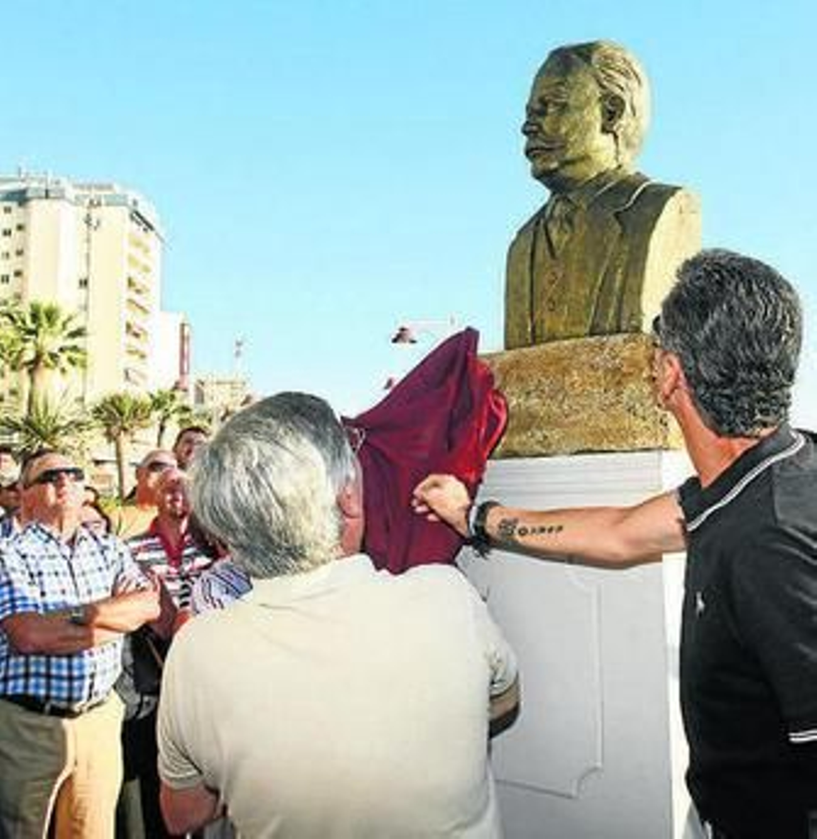 Al grupo se unieron muchos curiosos y bañistas, sorprendidos de ver Carnaval en directo en un lugar que no es precisamente el hábitat natural de las agrupaciones. Se descubrió el prototipo de busto de bronce dedicado al Tío de la Tiza, realizado por Artifex, que el Ayuntamiento se ha comprometido a inaugurar el año que viene. Al respecto, Antonio Montiel, el presidente del colectivo que inició los trámites para que Rodríguez tuviera su busto junto a la playa, el Aula de Cultura del Carnaval de Cádiz, expresó su deseo de que la efigie se estrene bien en Corpus, el mismo día festivo en el que aparecieron los duros en 1904, o el 19 de agosto, día del 101 aniversario de su muerte en Sevilla.