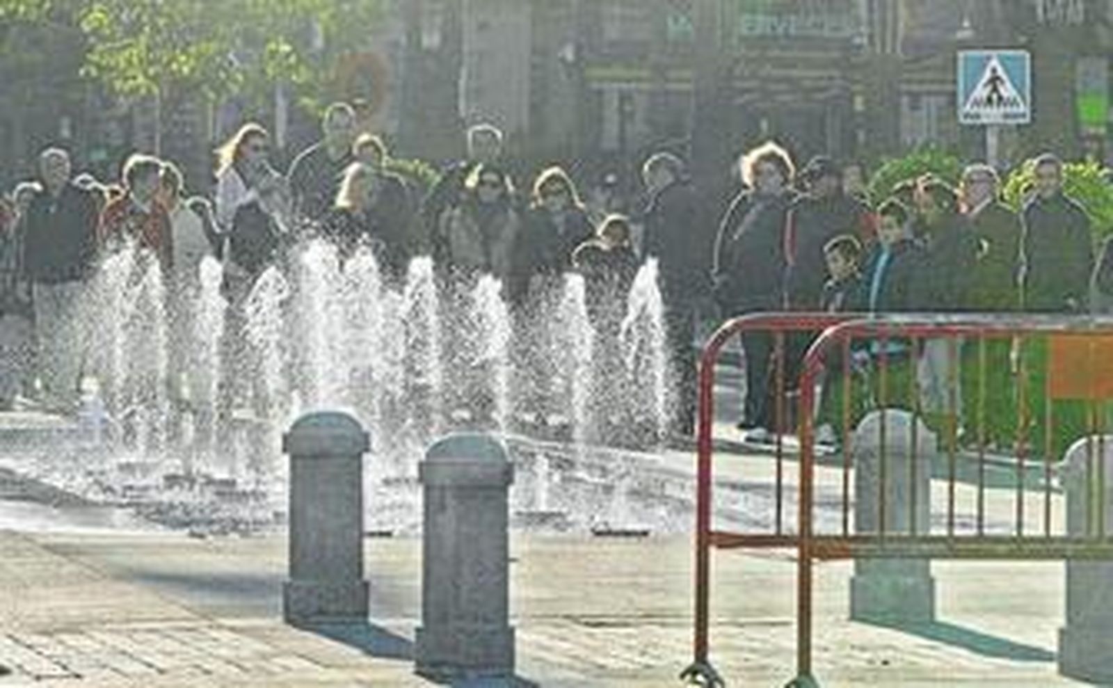 Todos los días se congregan numerosas personas en la plaza de San Juan de Dios para ver el nuevo espectáculo de las fuentes al ritmo de la música · Mucha gente aprovecha para grabar y hacerse fotos
