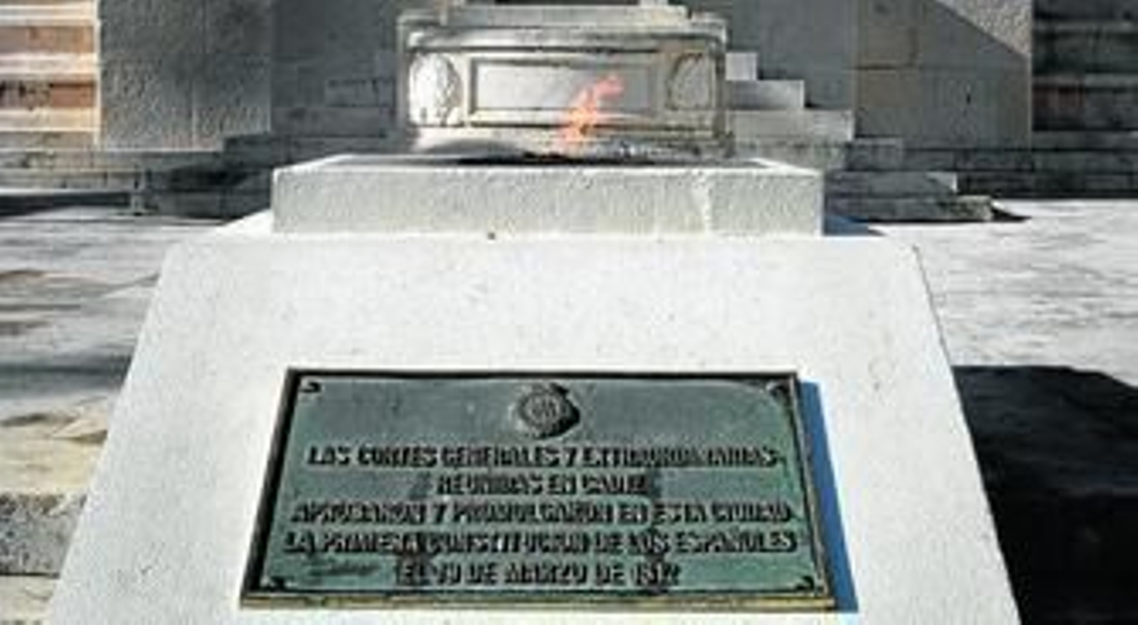 Con el fuego perpetuo se ha venido rindiendo homenaje a los diputados que redactaron la Carta Magna de 1812. Con ese objetivo lo instaló el anterior equipo de gobierno del Partido Popular hace ahora nueve años y medio. Es la explicación que recibe un asturiano, con cámara réflex en mano, que pregunta por su significado al ser interrogado por este asunto. "Hoy en día se pueden buscar alternativas. Se podría sustituir por una escultura, por algo sintético... Es verdad que el fuego es llamativo y luce porque tiene vida, es algo vivo, pero si el Ayuntamiento dice que no hay dinero, no hay". "Pero estaría bien buscar una alternativa", insiste el foráneo.