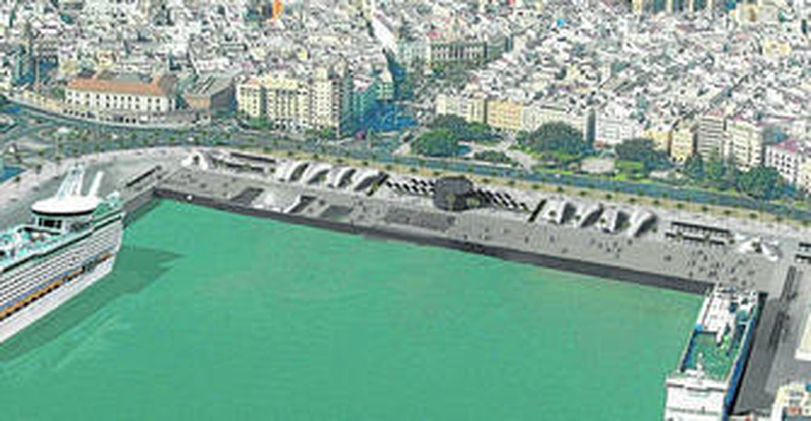 Para ello, dentro de un proyecto básico con una recreación infográfica, junto a la terminal de cruceristas irían unas construcciones a modo de pérgolas y donde también habría zonas ajardinadas que podría permitir también algunos espacios hosteleros. Además la gente podría llegar prácticamente hasta el cantil del muelle paseando con una valla ligera que podría ser retráctil para los momentos en los que haya barcos.