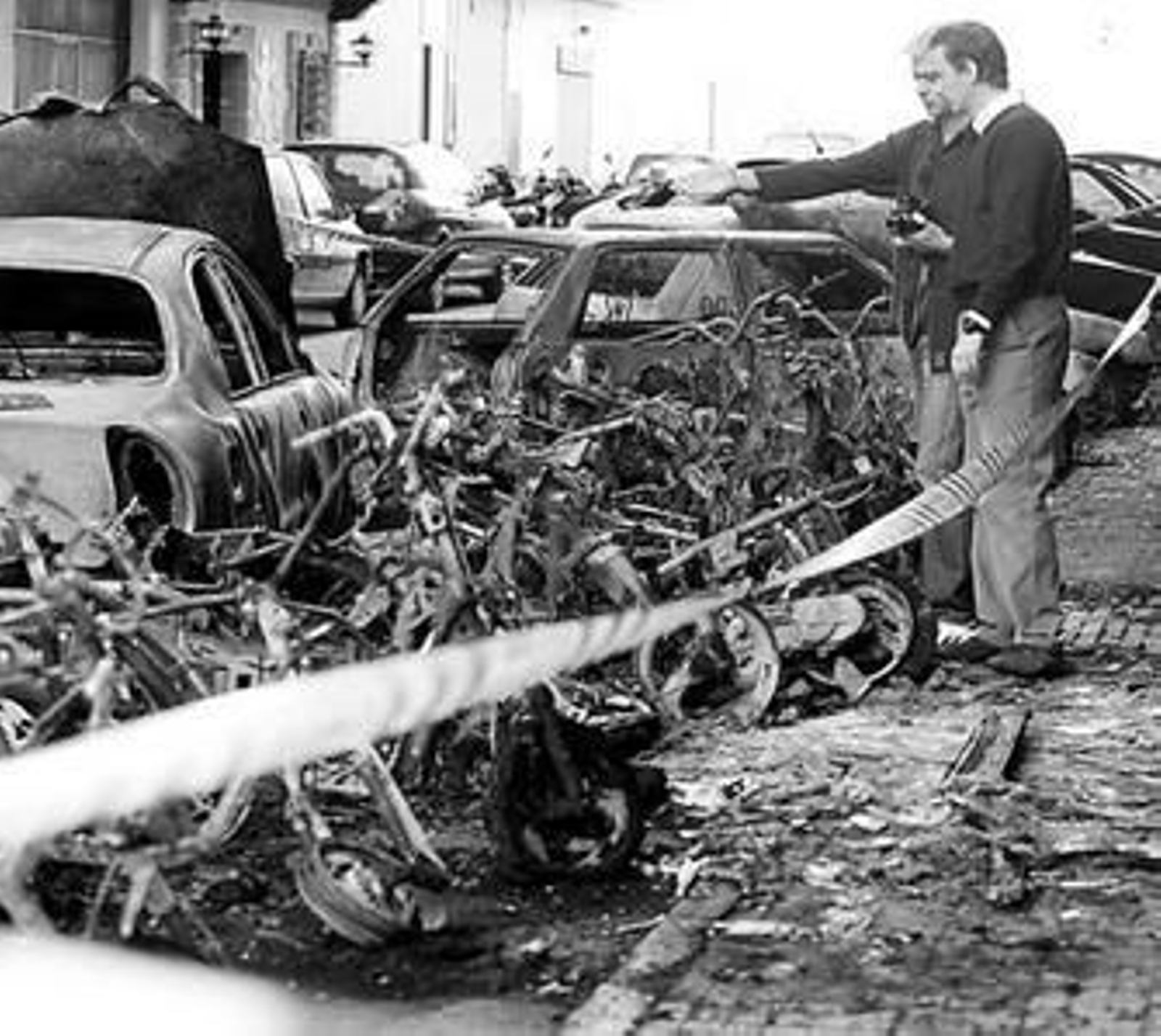 Comenzaron quemando dos ciclomotores en esa calle sin salida de extramuros, pero por simpatía las llamas se extendieron hacia otros 18 y además llegaron también a 8 turismos.