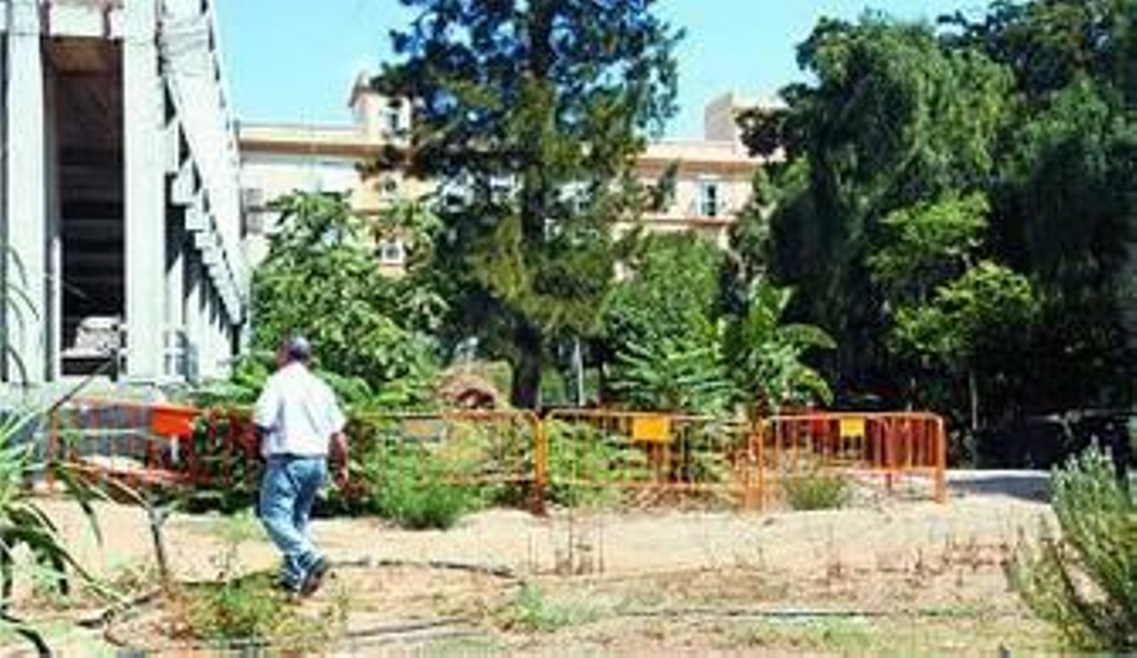 Un edificio a medio construir en la trasera del Hospital Militar reconvertido en el Centro Tecnológico es la única imagen exterior que los gaditanos pueden percibir del antiguo Jardín Botánico de Cádiz. Tras la valla, un destartalado vivero, árboles y plantas casi secas y un terreno semi abandonado.
