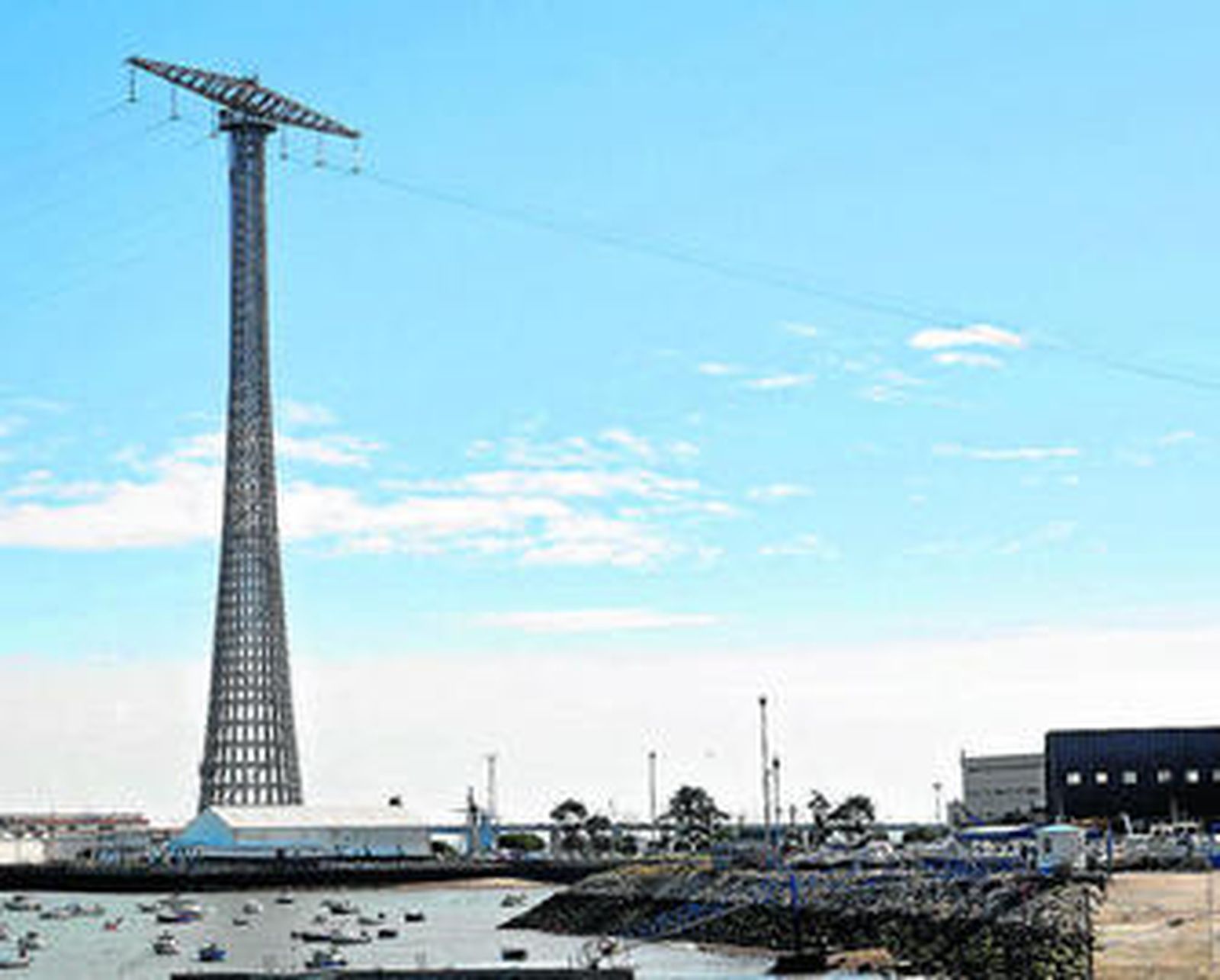 Las torres situadas junto al Castillo de San Lorenzo del Puntal y en la punta del Bajo de la Cabezuela cuentan con una altura de 120 metros, están coronadas por crucetas mediante un cuidadoso rigor estructural y "son con diferencia las que soportan un tendido eléctrico de mayor extensión, una catenaria de 1600 metros", cuenta de sus peculiaridades. Durante la investigación que iniciaron varios años atrás han descubierto que su autoría no responde a Alberto Toscano, que sí que colaboró en el proyecto, sino al italiano Nero Scala "que simultáneamente proyectó las torres del Estrecho de Messina". Junto a éstas, las de Cádiz constituyen las de mayor altura del mundo, puntualiza de Molina.