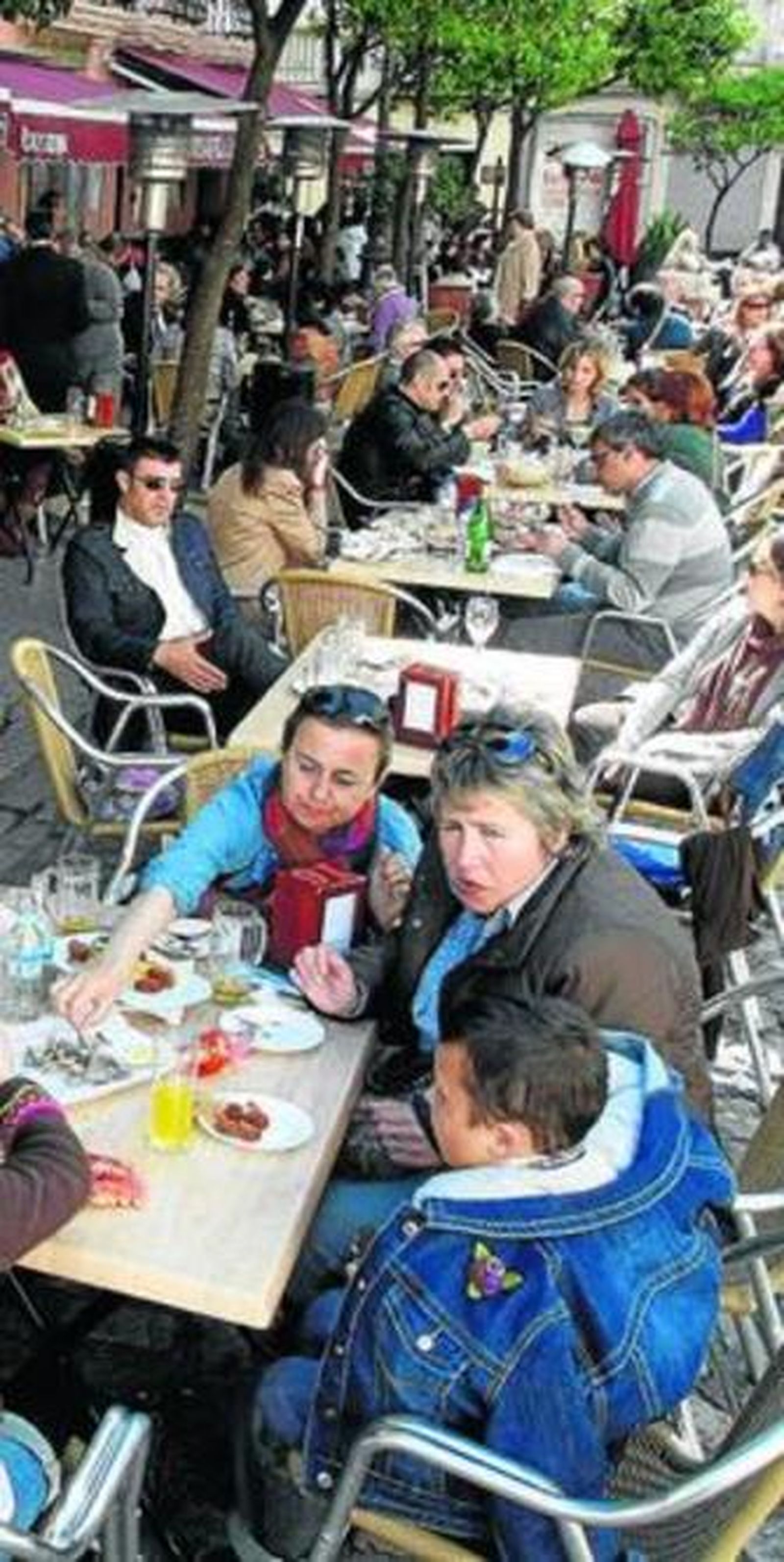 La hostelería vive un día inolvidable agotando sus existencias al enlazar almuerzo, merienda y cena · Unas 65.000 personas participaron en los actos durante el día, según el Ayuntamiento