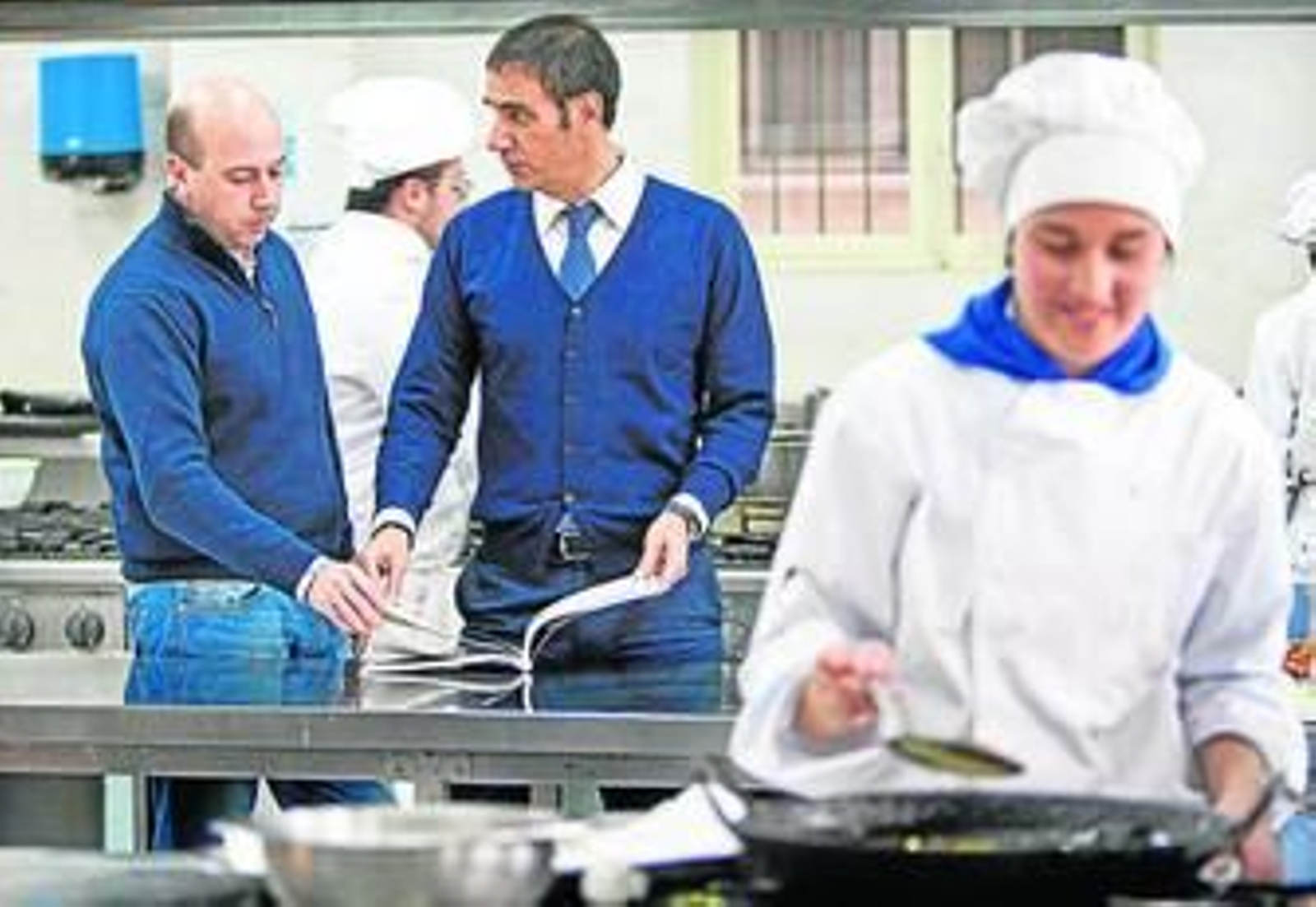 Sancha nos recibe en su espartano despacho de la Escuela de Hostelería. Dirige a los resistentes de Valcárcel, que se atrincheran tras una puertecita trasera. Cuando el histórico edificio cerró hace diez años como centro educativo, lo único que quedó fue esta escuela, la primera que se puso en marcha en la provincia, hace cuarenta años, cuando eso de las escuelas de hostelerías era una rareza. Las instalaciones que se esconden tras esa pequeña puerta son grandes, pero anticuadas. Aquí imparten clases 19 profesores que cuentan con 204 alumnos. La inserción laboral de los futuros cocineros que salen de aquí es de un 80% y algunos de ellos han encontrado acomodo en restaurantes de relumbrón vascos, como el de Martín Berasategui, mientras que otros dirigen las cocinas de establecimientos emergentes de Cádiz como Sopranis o Garum. Sancha rezuma orgullo cuando habla de sus chicos.