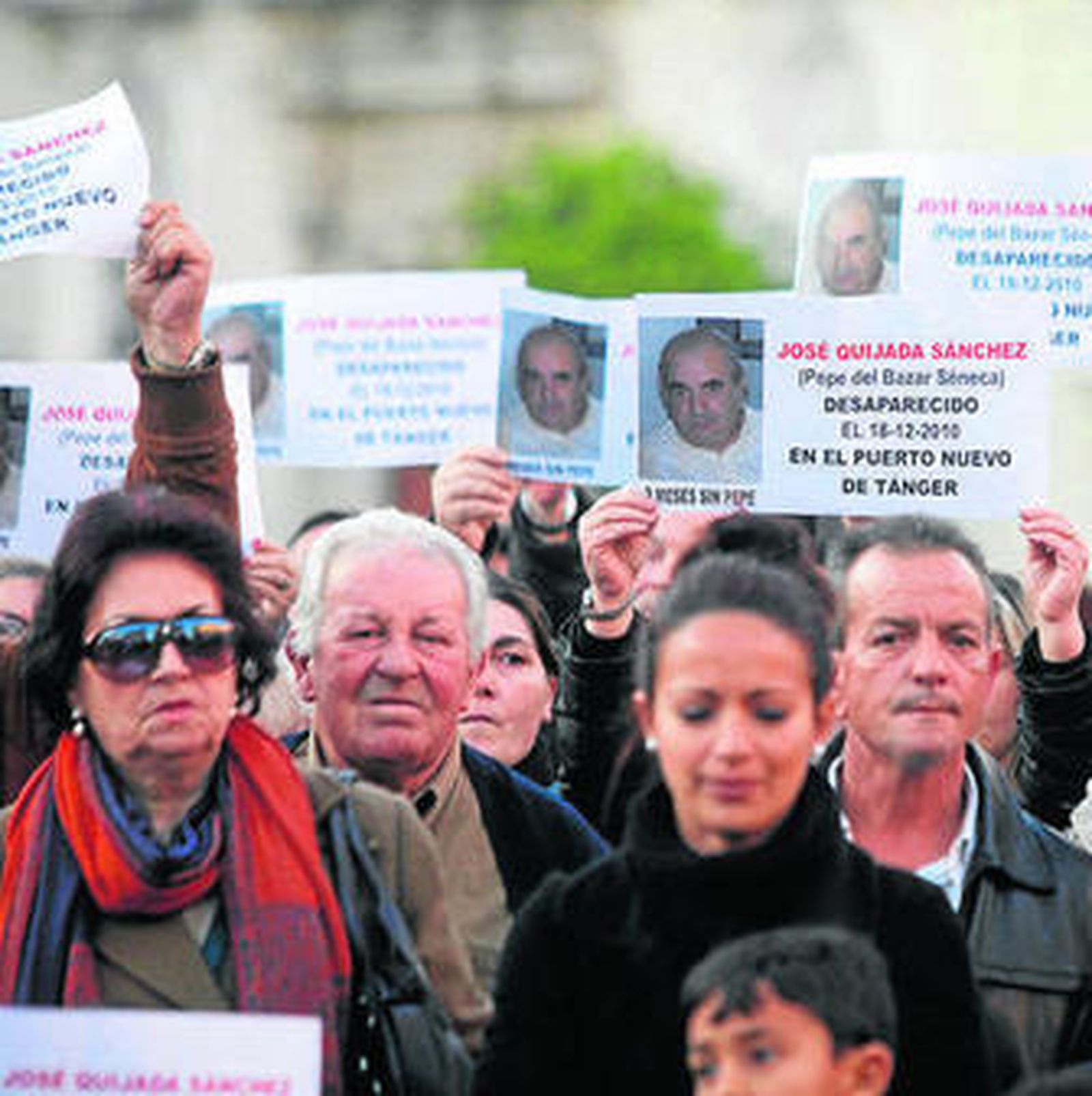 La concentración comenzaba a las siete de la tarde con unas 60 personas que llevaban una pancarta en la que se podía leer, "José Quijada Sánchez (Pepe del Bazar Séneca) desaparecido el 18 de diciembre de 2010 en el puerto nuevo de Tánger".