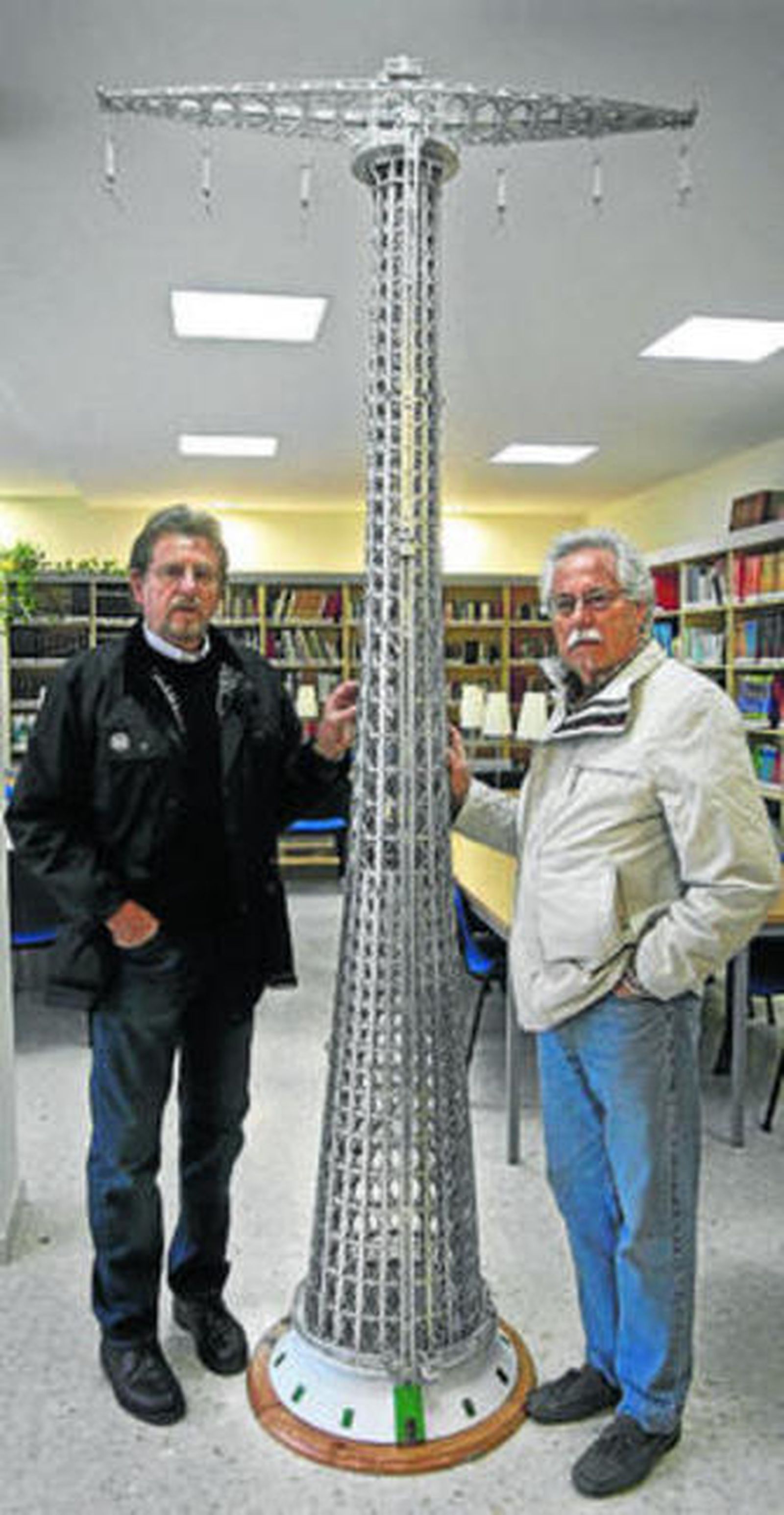 Los hermanos Juan y Cristóbal Bastida Harillo han realizado una réplica de la torre del tendido eléctrico de la Bahía de más de dos metros y medio de altura · La obra se presenta hoy en la AVV