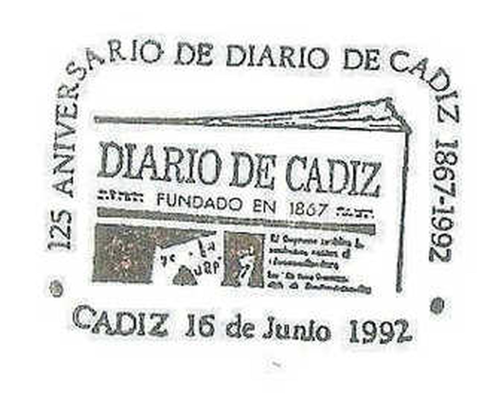 Anteriores efemérides de 'Diario de Cádiz' tuvieron repercusión en el mundo de la filatelia, como bien nos recuerda el gaditano José Vázquez, de la Sociedad Filatélica Gaditana, quien realizó el diseño del matasellos que Correos dedicó a este rotativo con motivo de su 125 aniversario, celebrado el 16 de junio de 1992. Ese mismo día se instaló una estafeta ambulante en la sede del Diario, en la calle Ceballos, donde se matasellaron cartas siempre que el franqueo fuera superior a doce pesetas. También se editaron unos 2.000 sobres ilustrados con una imagen de la primera página de Diario de Cádiz del 16 de junio de 1867.