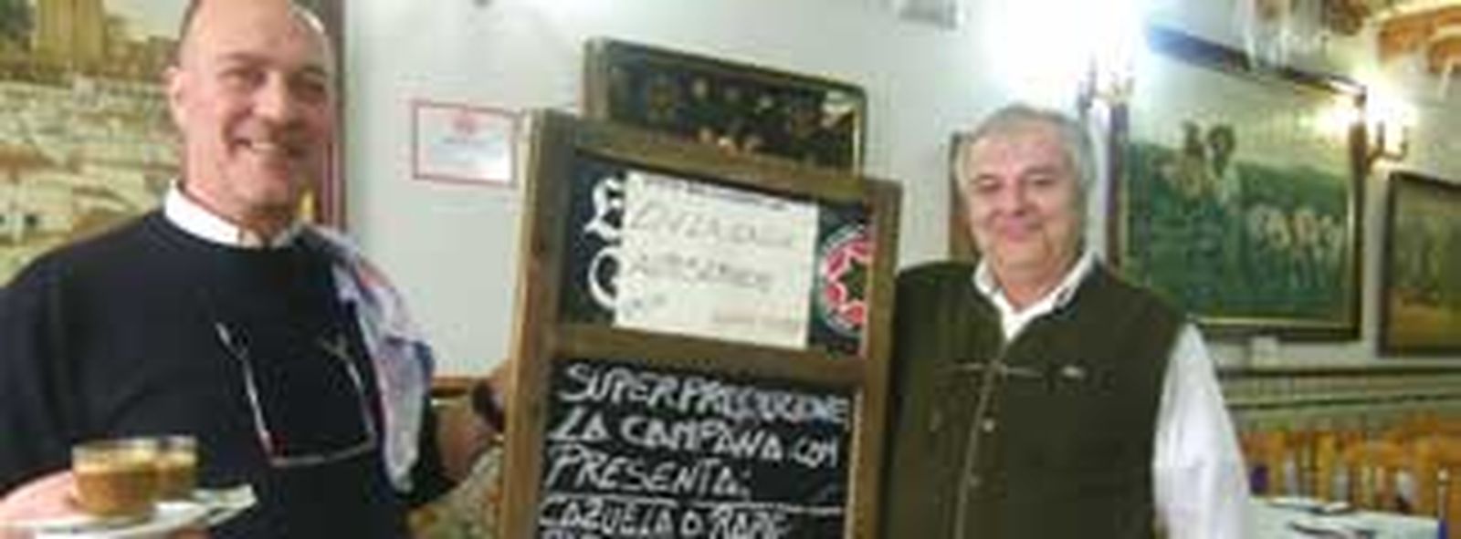 Tomás Mayo es también otro tesoro de La Campana. Es capaz, en un minuto, de organizarte un menú degustación, un paseo por la cocina del establecimiento, como si estuvieras en un restaurante de postín. Te pone un menú largo y estrecho, con la única diferencia de que el precio, a diferencia de los de postín, es también estrecho, y para dos, puede quedarse en torno a los treinta euros.