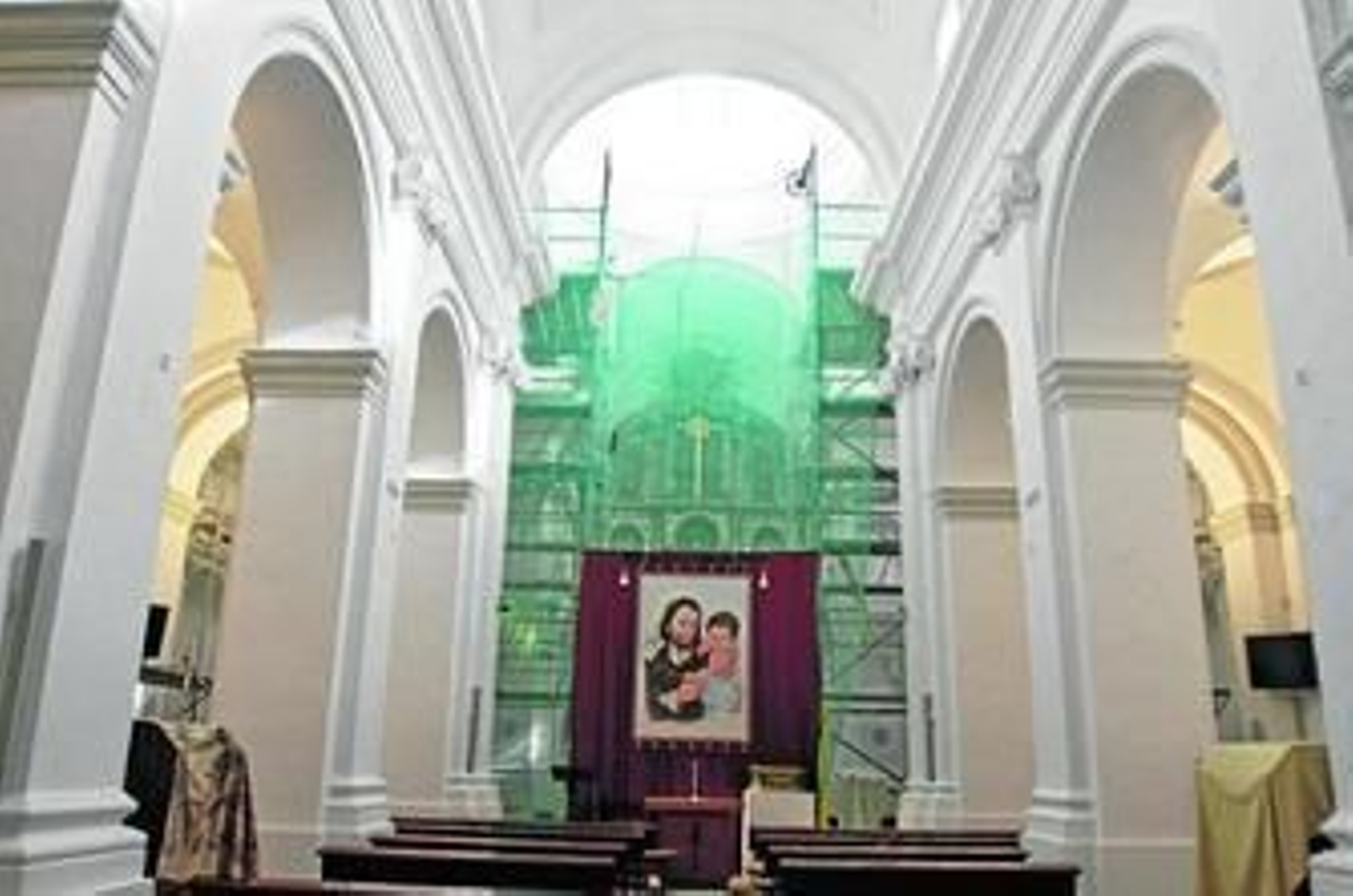 Además de esto, se han reparado las vigas (sustituyendo los hierros y el hormigón que faltaba o que estaba en mal estado) y se ha pintado el conjunto con colores "unificados, lo que da mayor sensación de paz al edificio". Todo ello, destaca el arquitecto, con un espectacular andamiaje que ha hecho posible que durante las obras se haya podido mantener abierta la iglesia al culto.